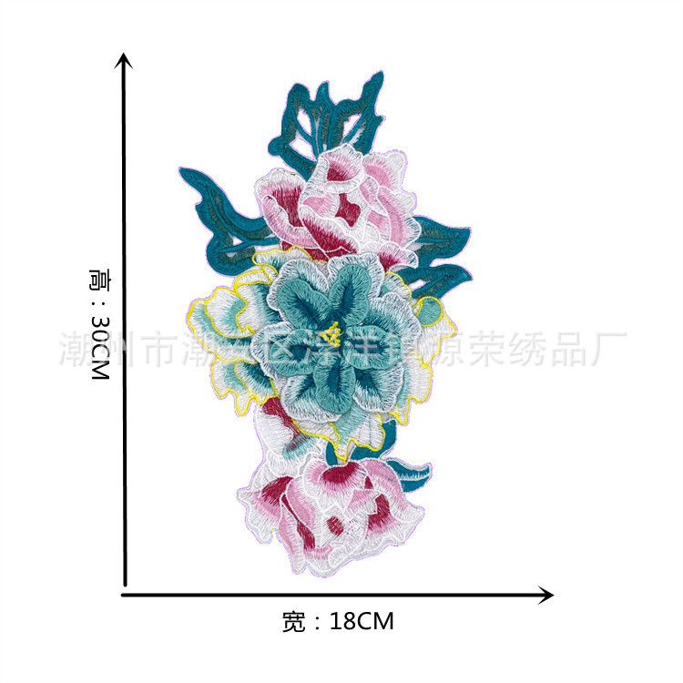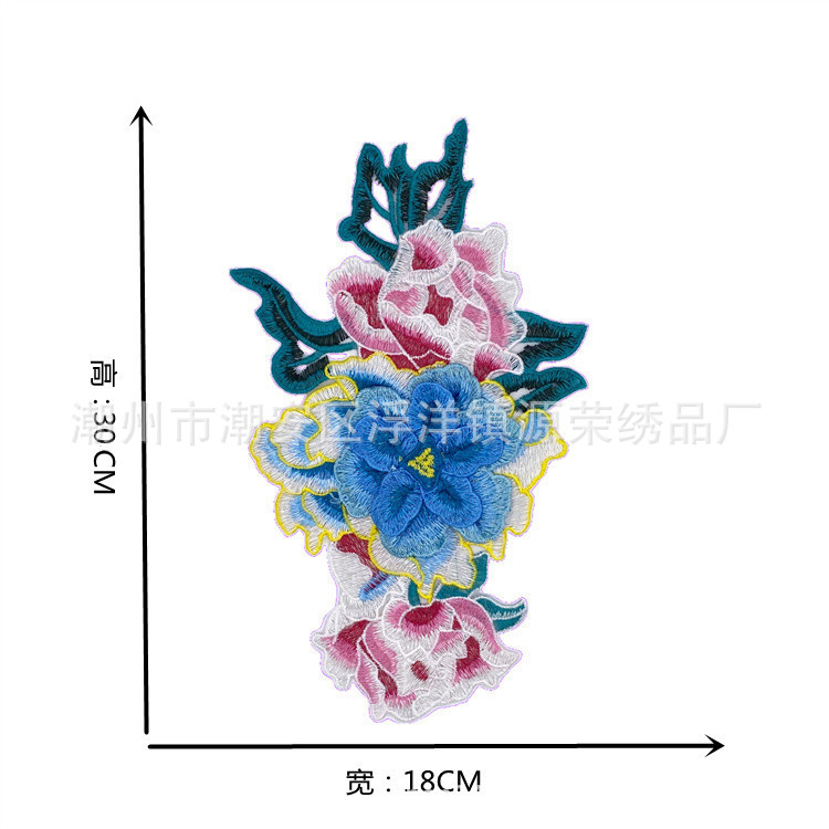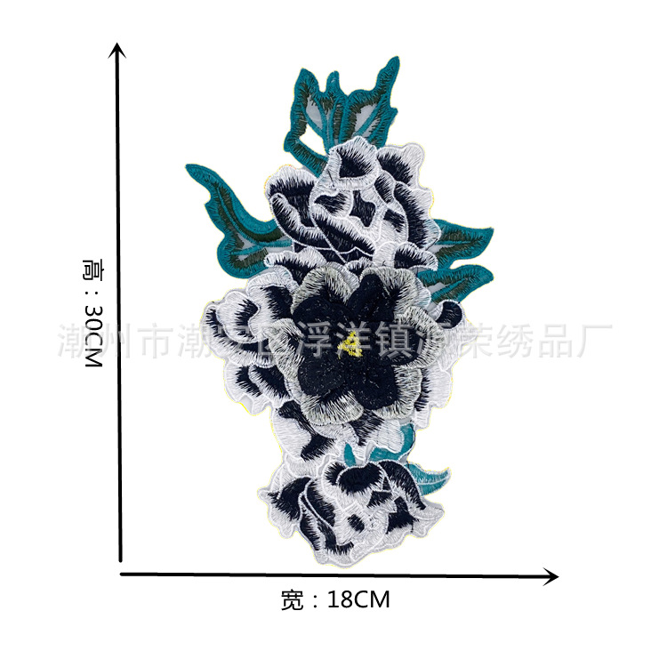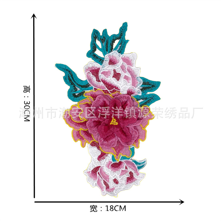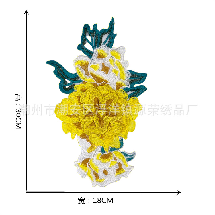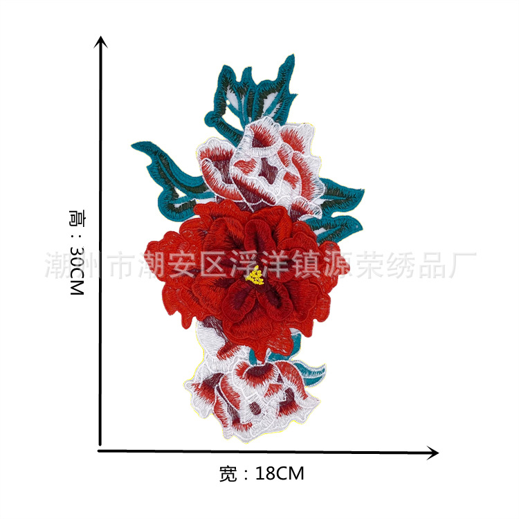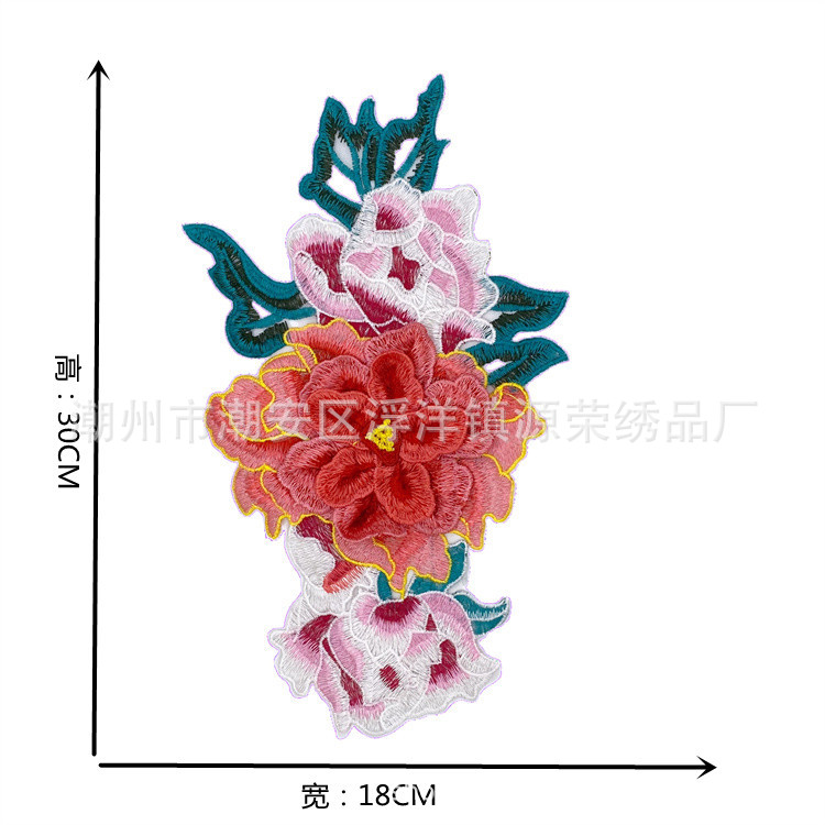 입체 모란 꽃 큰 구멍 패치 핫멜트 유리 사 컴퓨터 자수 레이스 천 페이스트 액세서리 도매