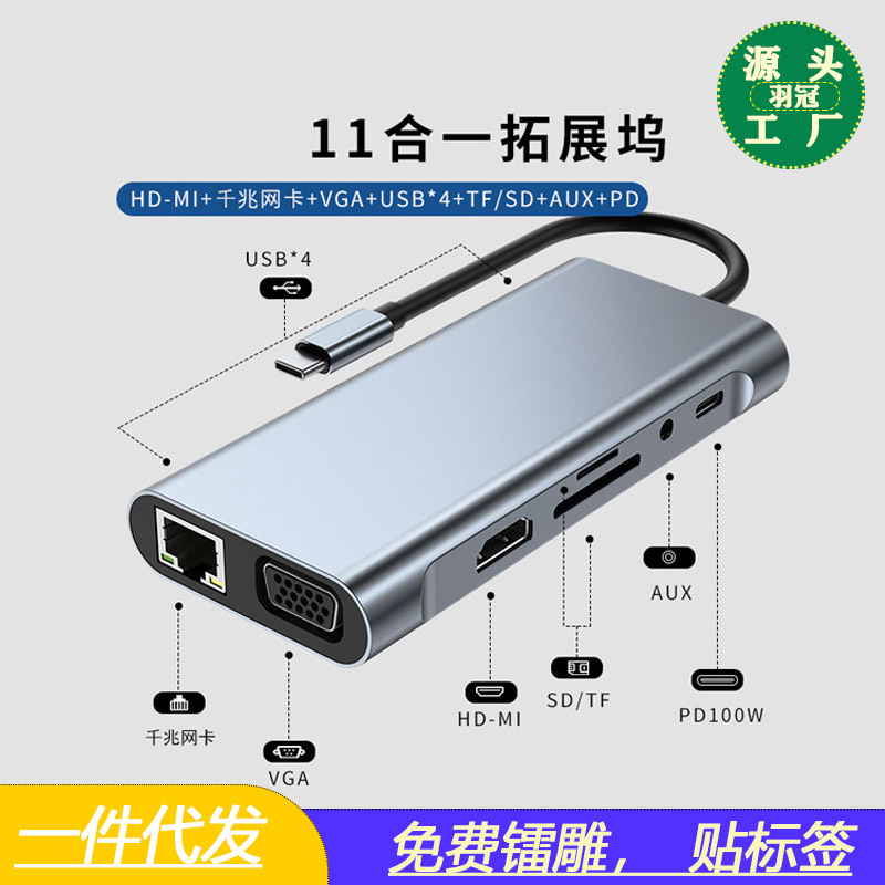 Typec 도킹 스테이션 11-in -1 다기능 usb-c 도킹 스테이션 네트워크 포트 허브 컴퓨터 HUB 기가비트 네트워크 포트스토어 가기