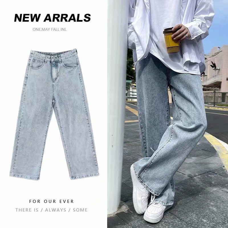 청바지 남자의 가을 홍콩 스타일 유행 브랜드 느슨한 스트레이트 와이드 다리 발목 길이 바지 캐주얼 라이트 컬러 롱 팬츠스토어 가기