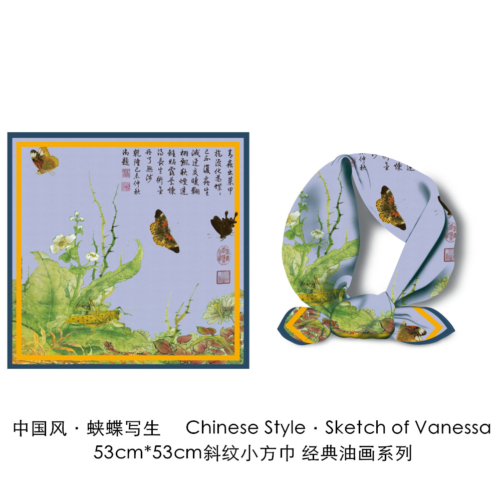 중국풍. 북송조왕조 시대의 조창 나비 스케치 장식화 2024년 신상품 국민 스타일 실크 스카프, 작은 사각 스카프, 중국풍 스카프