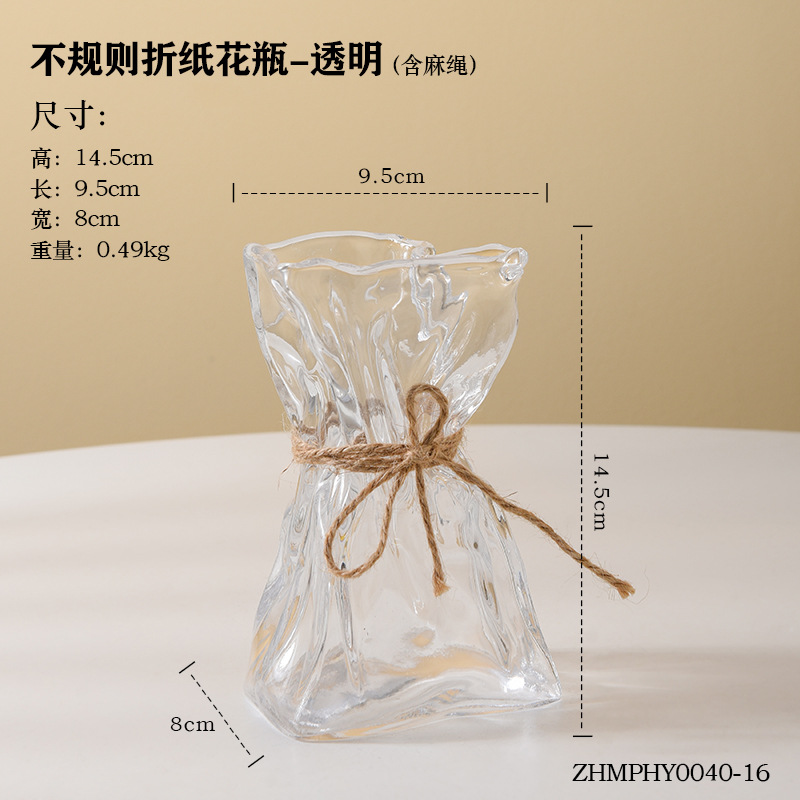 • 불규칙한 종이 접기 꽃병-투명 대형