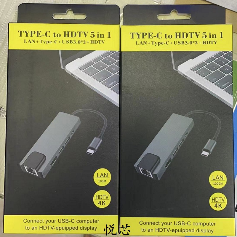 Typec 转hdmi+网卡+USB+PD 多合一扩展坞