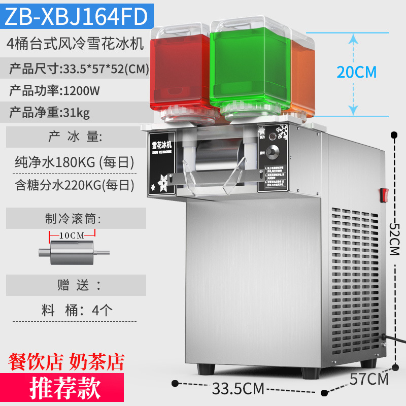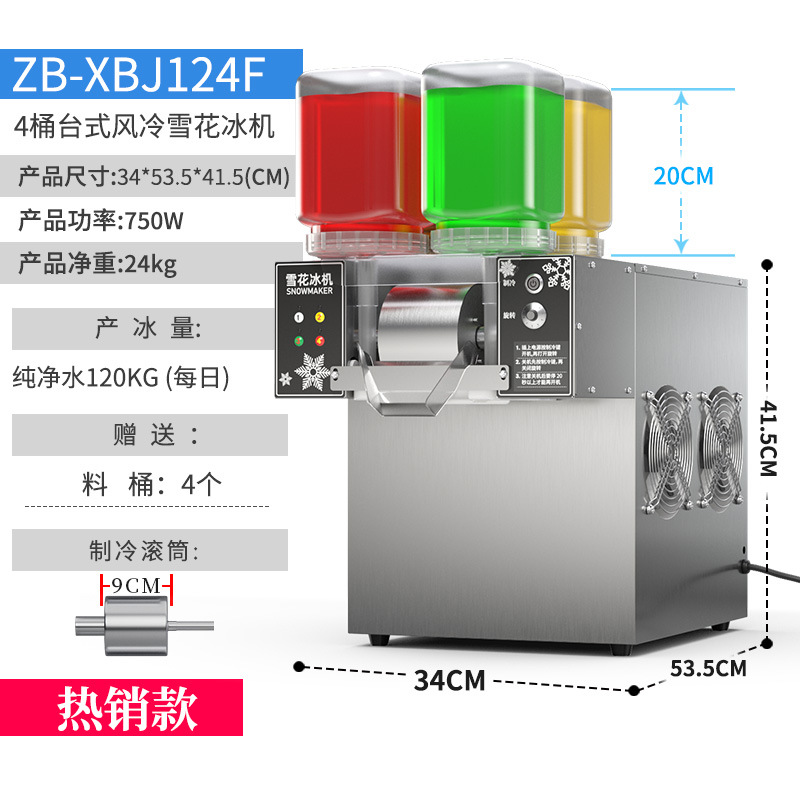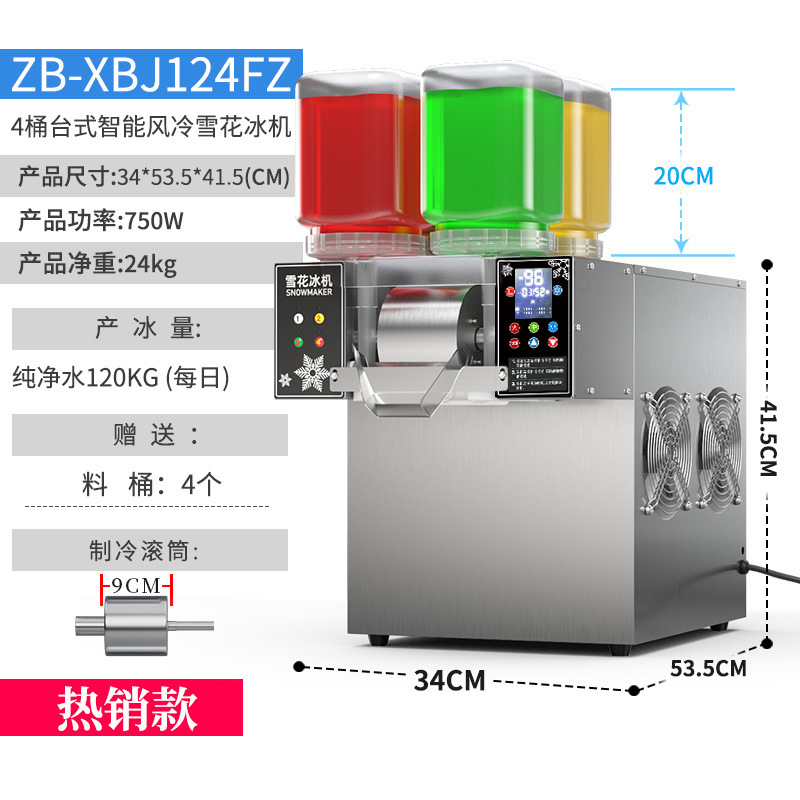 무지개 4통 눈송이 얼음 기계 상업용 우유 얼음 기계 모래 레스토랑 냄비 우유 차 가게 커피 장비