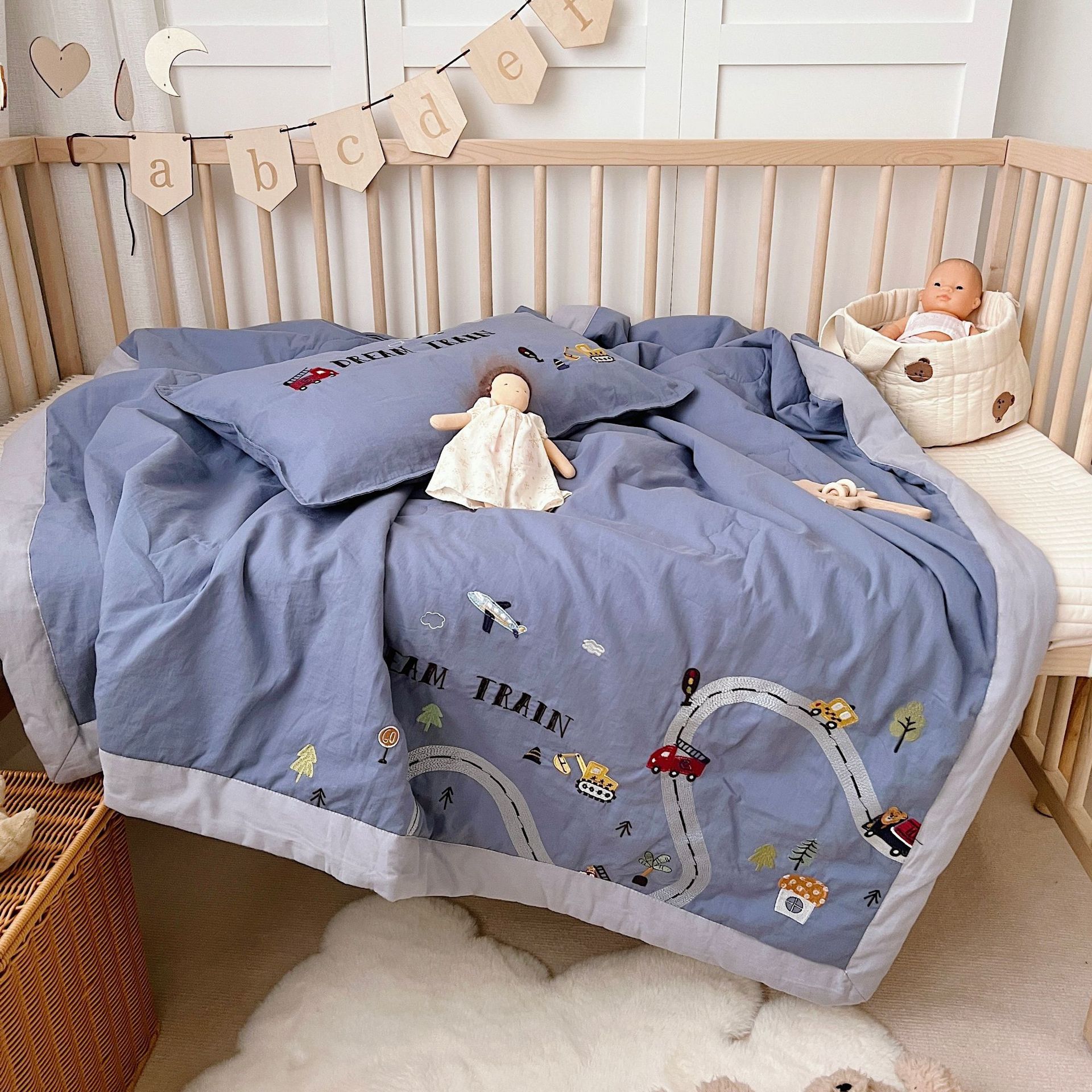 작은 신선한 귀여운 만화 여름 에어컨 이불 어린이 아기 싱글 여름 멋진 이불 콩 섬유 얇은 이불 여름 이불스토어 가기