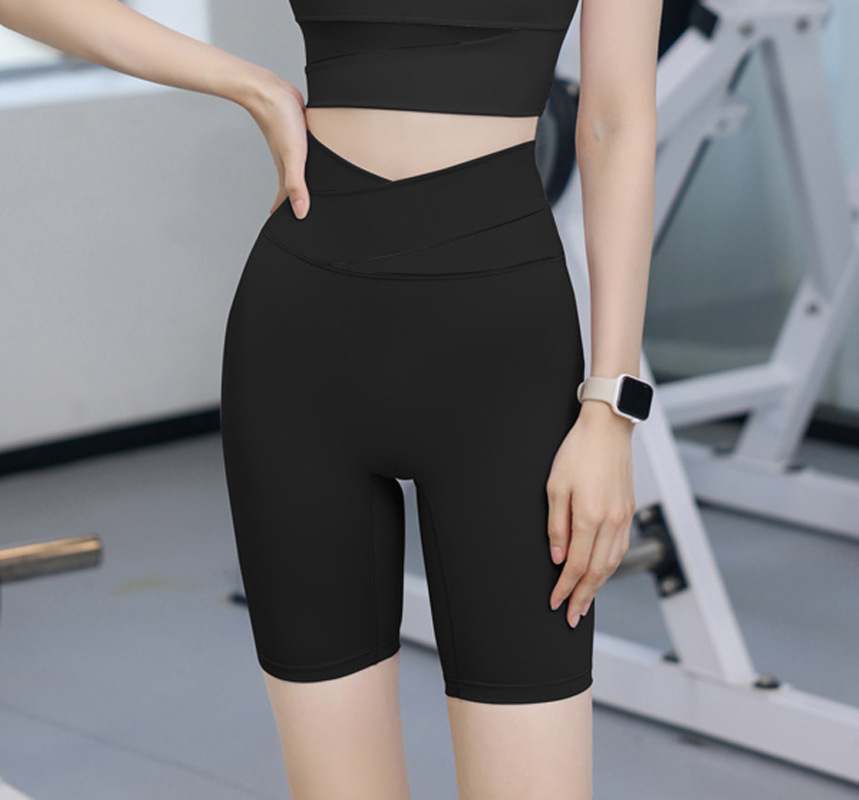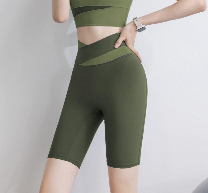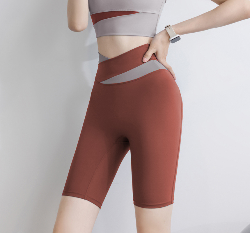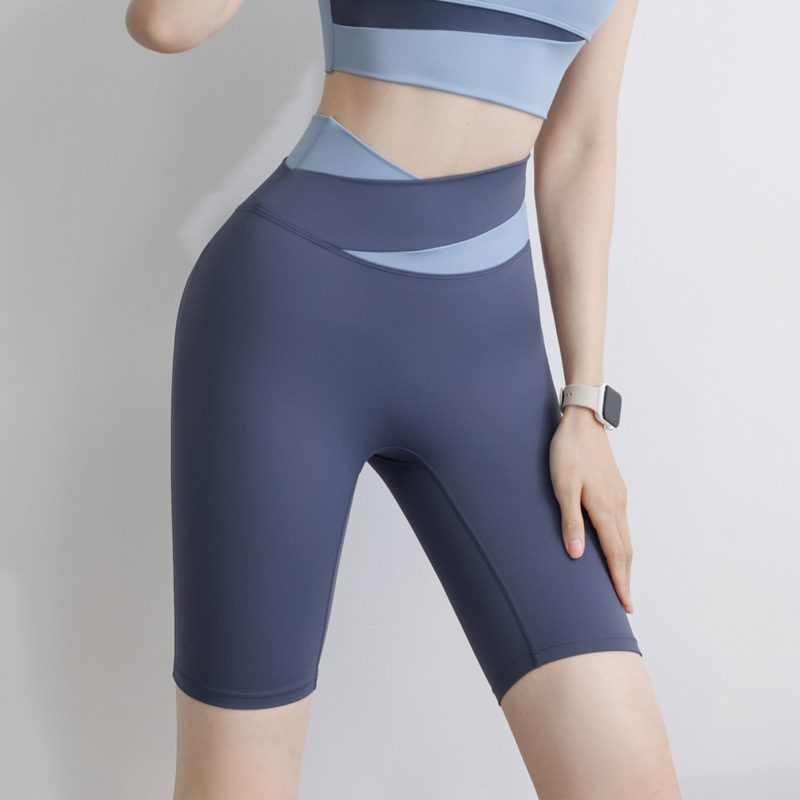 스포츠 반바지 여성용 하이 웨이스트 엉덩이 리프팅 바지 피트니스 스트레치 알몸 컬러 블록 달리기 여름 요가 라이딩 바지스토어 가기
