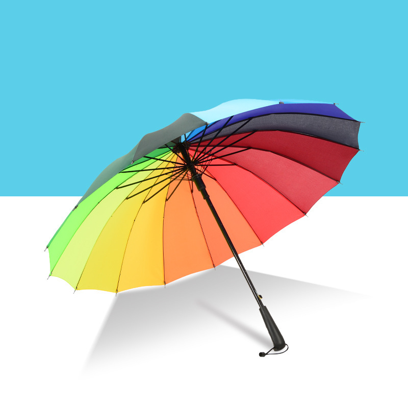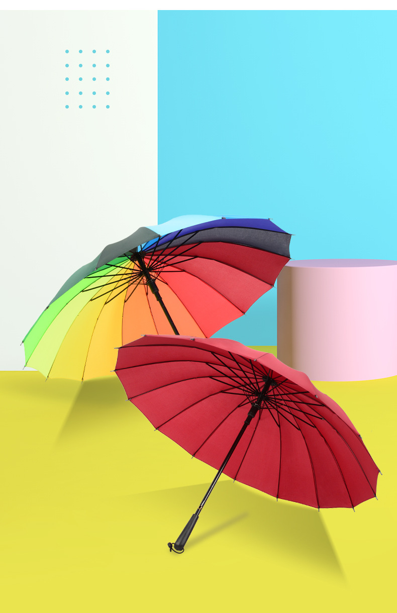강화된 방풍 16골 자동 우산, 창의적인 무지개 우산, 긴 손잡이 직립형 우산, 도매 선물용 우산, 광고용 우산