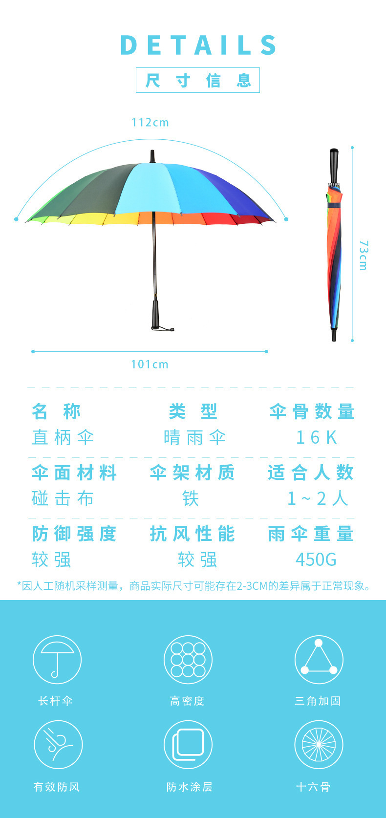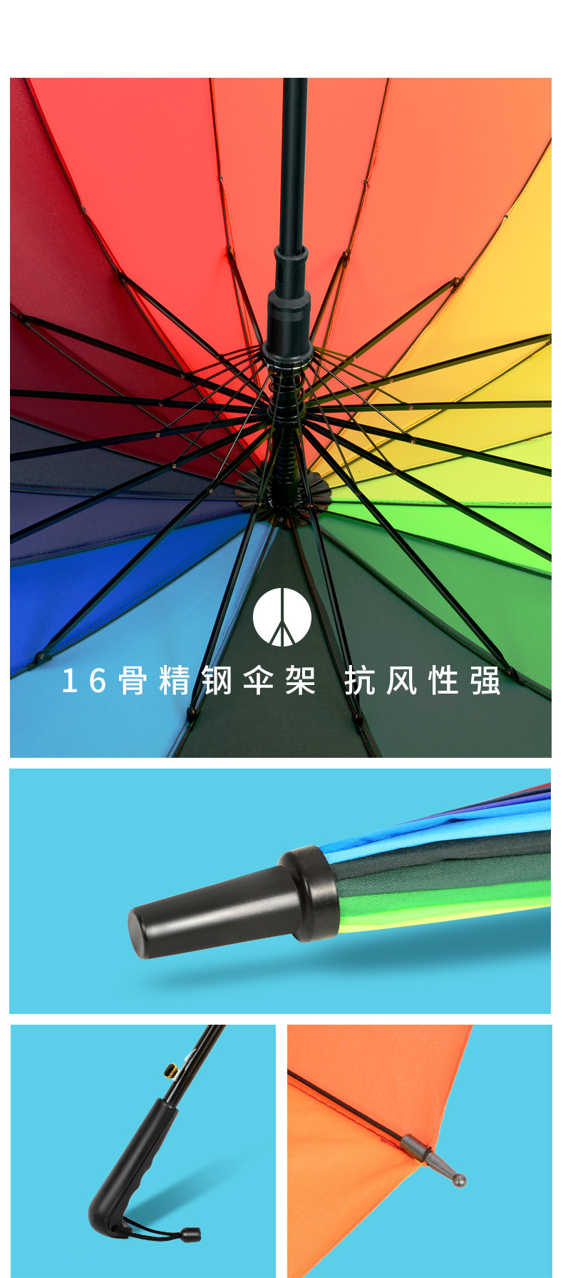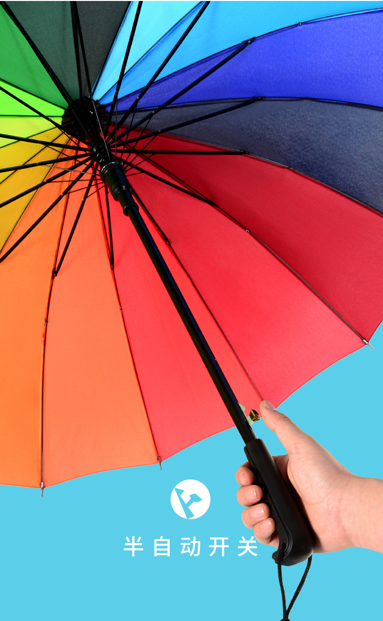 강화된 방풍 16골 자동 우산, 창의적인 무지개 우산, 긴 손잡이 직립형 우산, 도매 선물용 우산, 광고용 우산스토어 가기