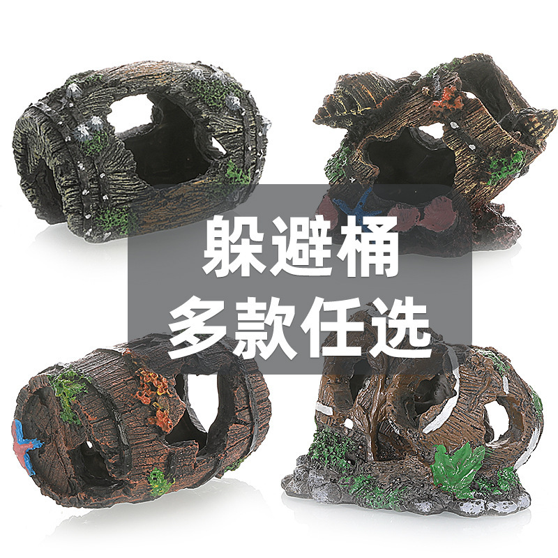 어항 장식 풍경 수족관 풍경 수지 공예 장식품 나무 배럴 잔해 피하기 버킷스토어 가기