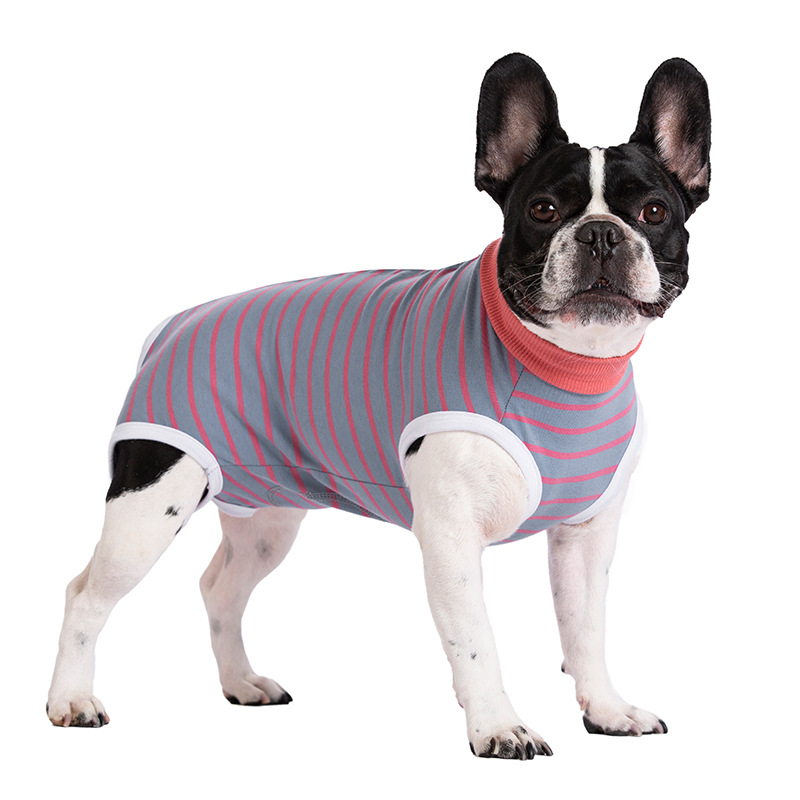 개 옷 얇은 배꼽 조끼 가방 안티 쿨 무료 스트라이프 셔츠 백 버튼 여성 개 살균 및 이유