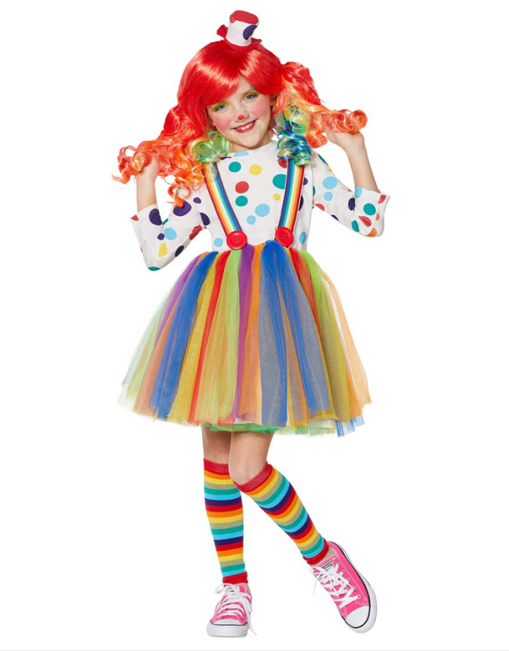 할로윈 키즈 광대 의상 소녀 코스프레 가장 무도회 쇼 원피스 레인보우 퍼프 원피스