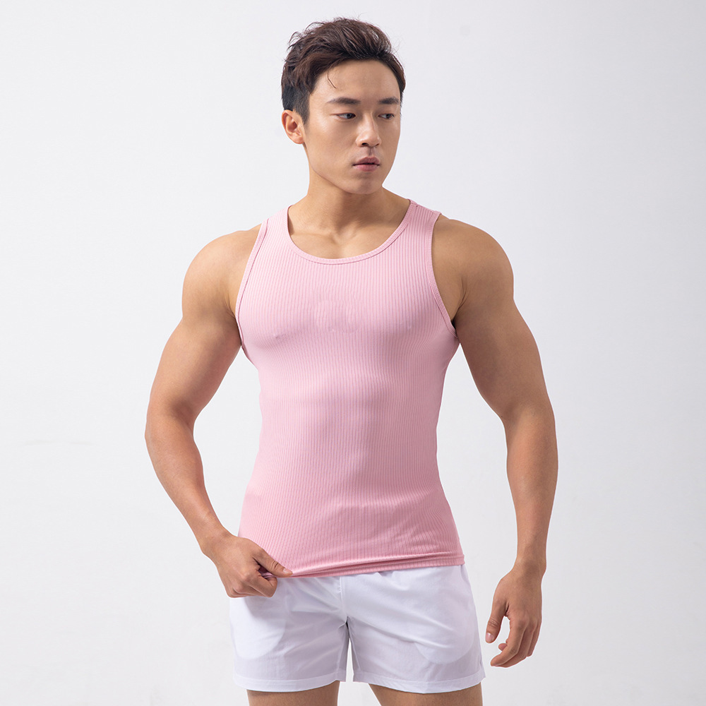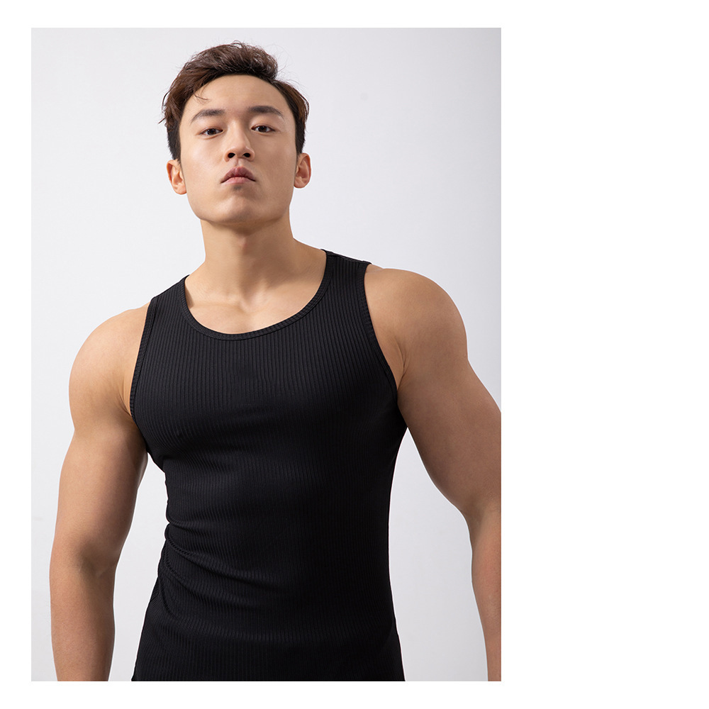 여름 트렌디 브랜드 솔리드 컬러 속건 탄성 꽉 스포츠 조끼 남성용 민소매 조끼 피트니스 트레이닝 러닝 조끼스토어 가기
