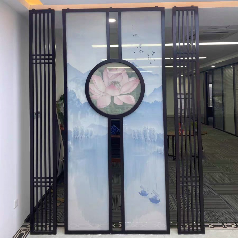 새로운 중국 스타일의 단단한 나무 원사 그림 화면 파티션 거실 그릴 이동 대피소 복도 간단한 일본 스타일스토어 가기