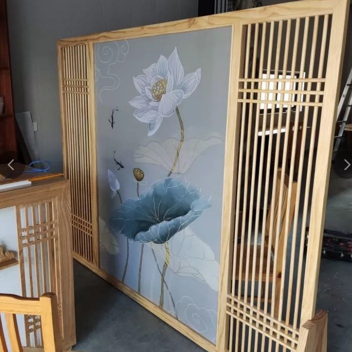 새로운 중국 스타일의 단단한 나무 원사 그림 화면 파티션 거실 그릴 이동 대피소 복도 간단한 일본 스타일