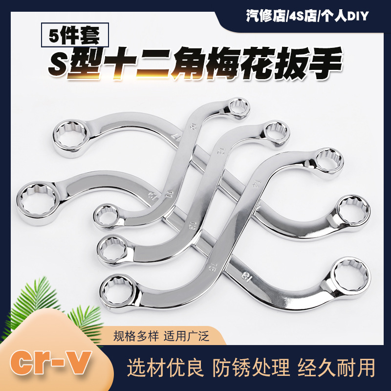 5 피스 S 형 양두 매화 렌치 U 형 C 형 이중 매화 판 곡선 핸들 양방향 이중 목적 렌치 육각형 렌치스토어 가기