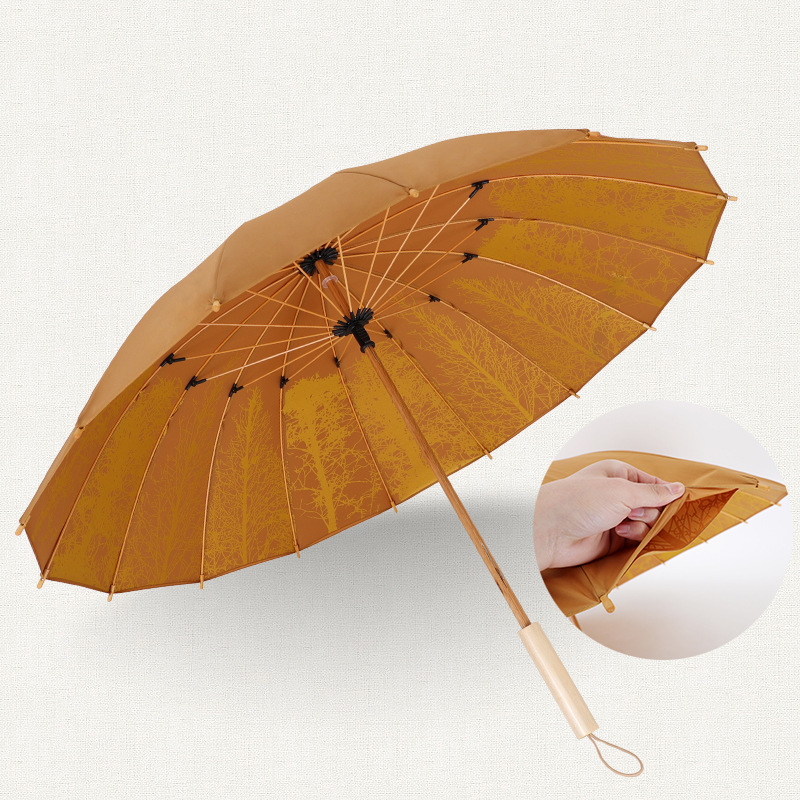 빈티지 나무 손잡이 우산 국민식 단단한 나무 손잡이 긴 손잡이 우산 스트레이트 바 강화 16 뼈 수동 선물 우산