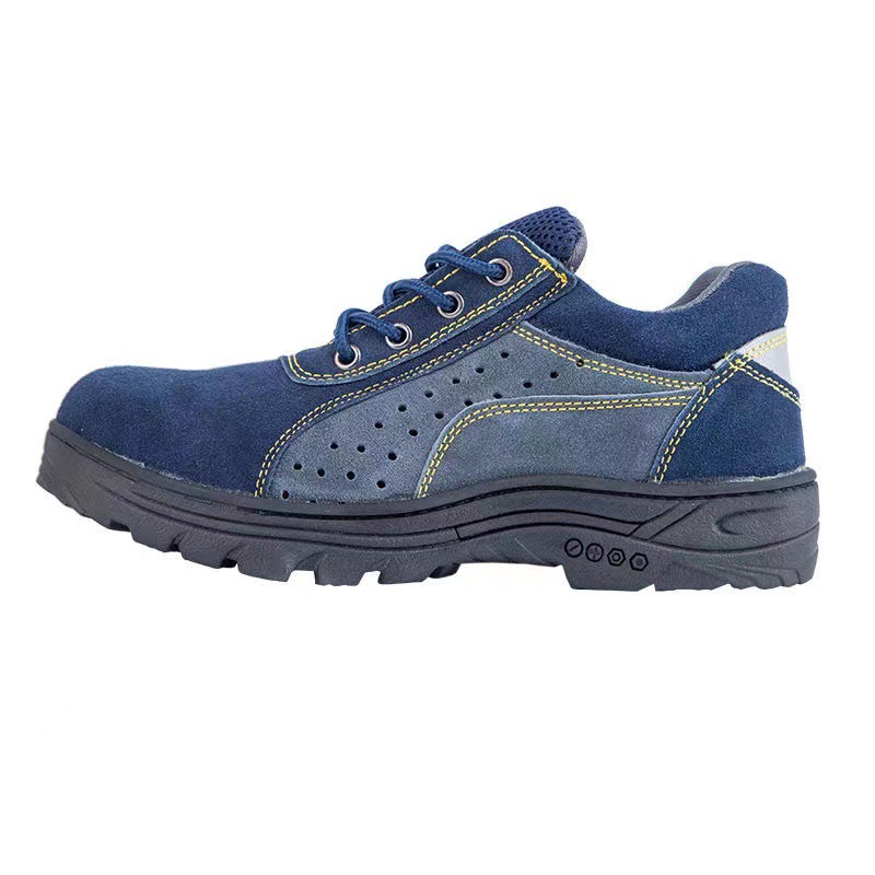 여름 용접기 로우 탑 원 페달 스웨이드 소가죽 스매싱 방지 및 찌르기 방지 고무 밑창 작업 남성 노동 보호 신발 철 발가락