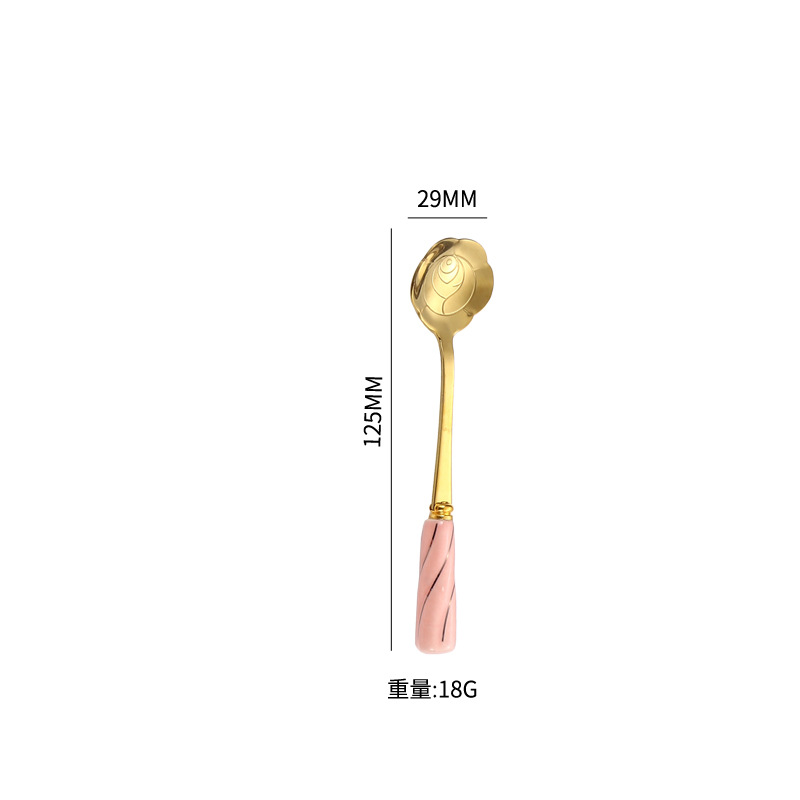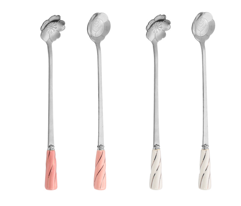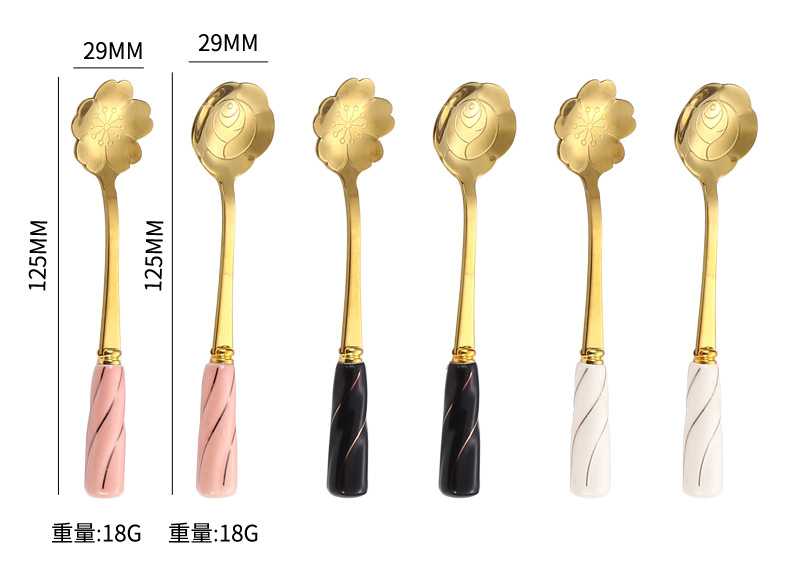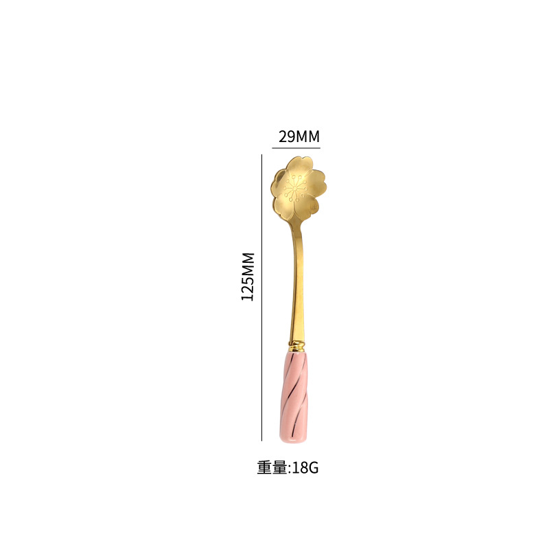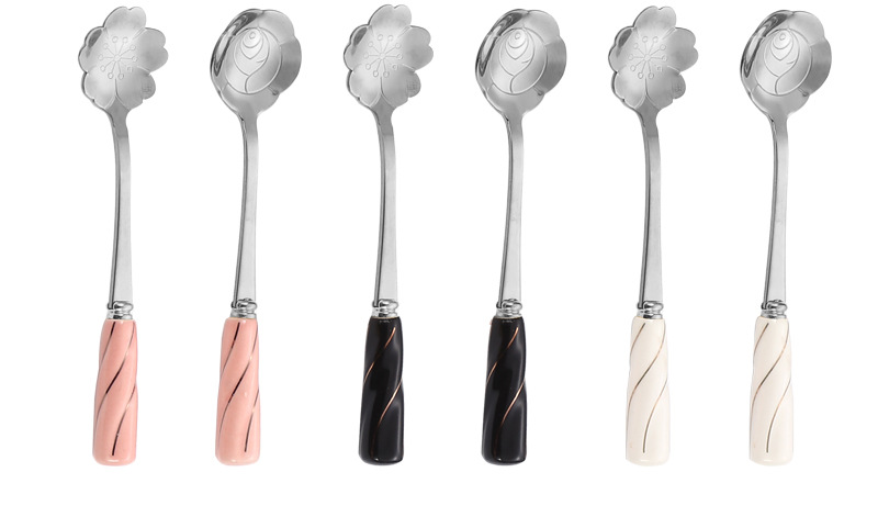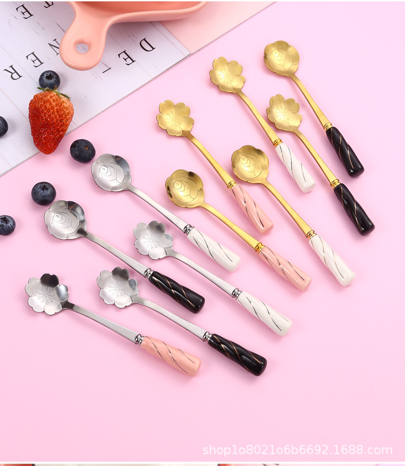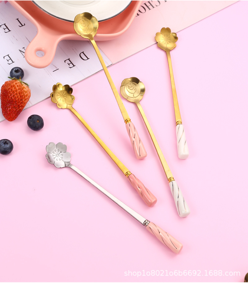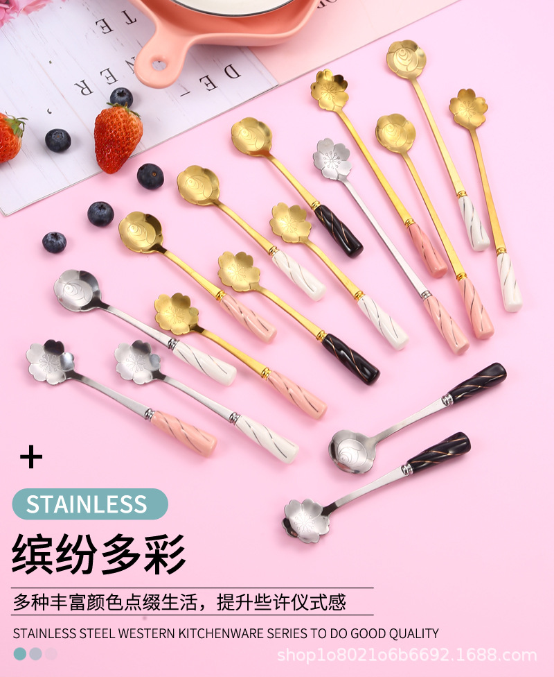 일본과 한국의 창조적 인 스테인레스 스틸 세라믹 손잡이 꽃 스푼 커피 스푼 믹싱 스푼 디저트 스푼 새 둥지 스푼 벚꽃 장미 스푼