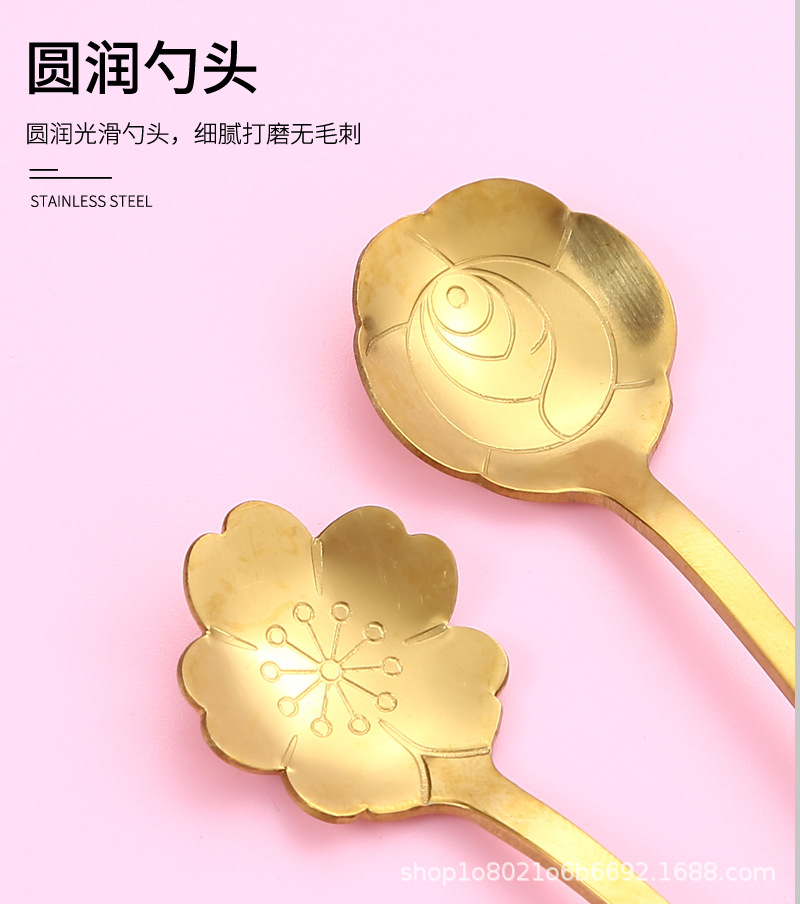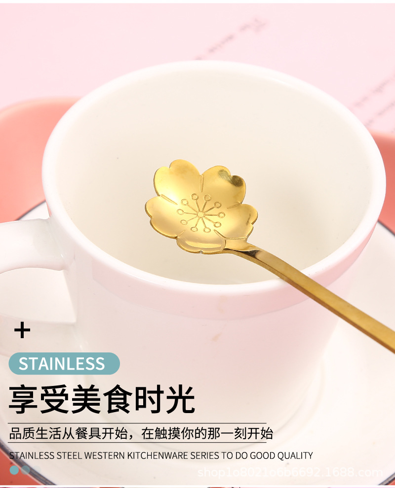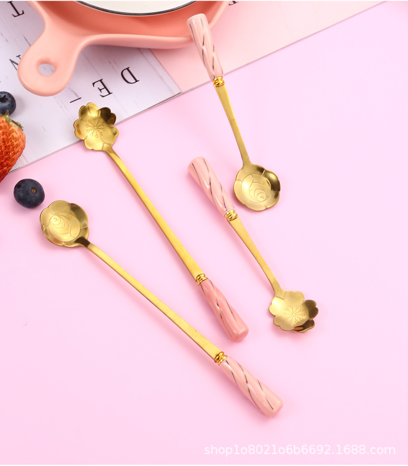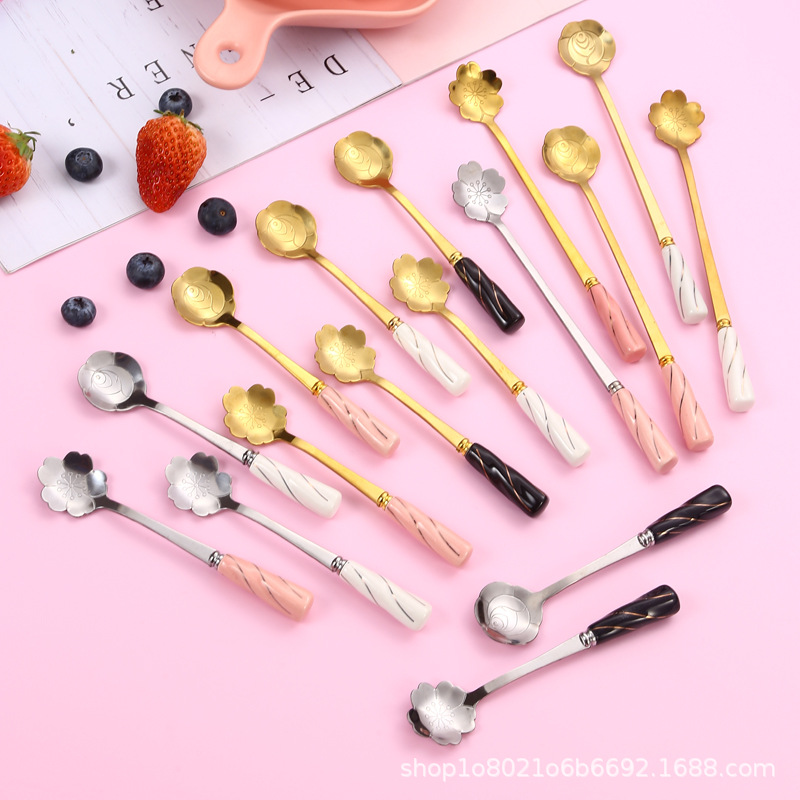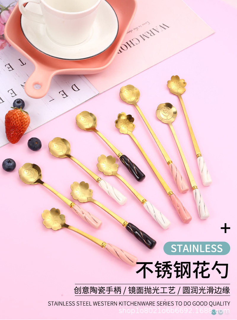 일본과 한국의 창조적 인 스테인레스 스틸 세라믹 손잡이 꽃 스푼 커피 스푼 믹싱 스푼 디저트 스푼 새 둥지 스푼 벚꽃 장미 스푼스토어 가기