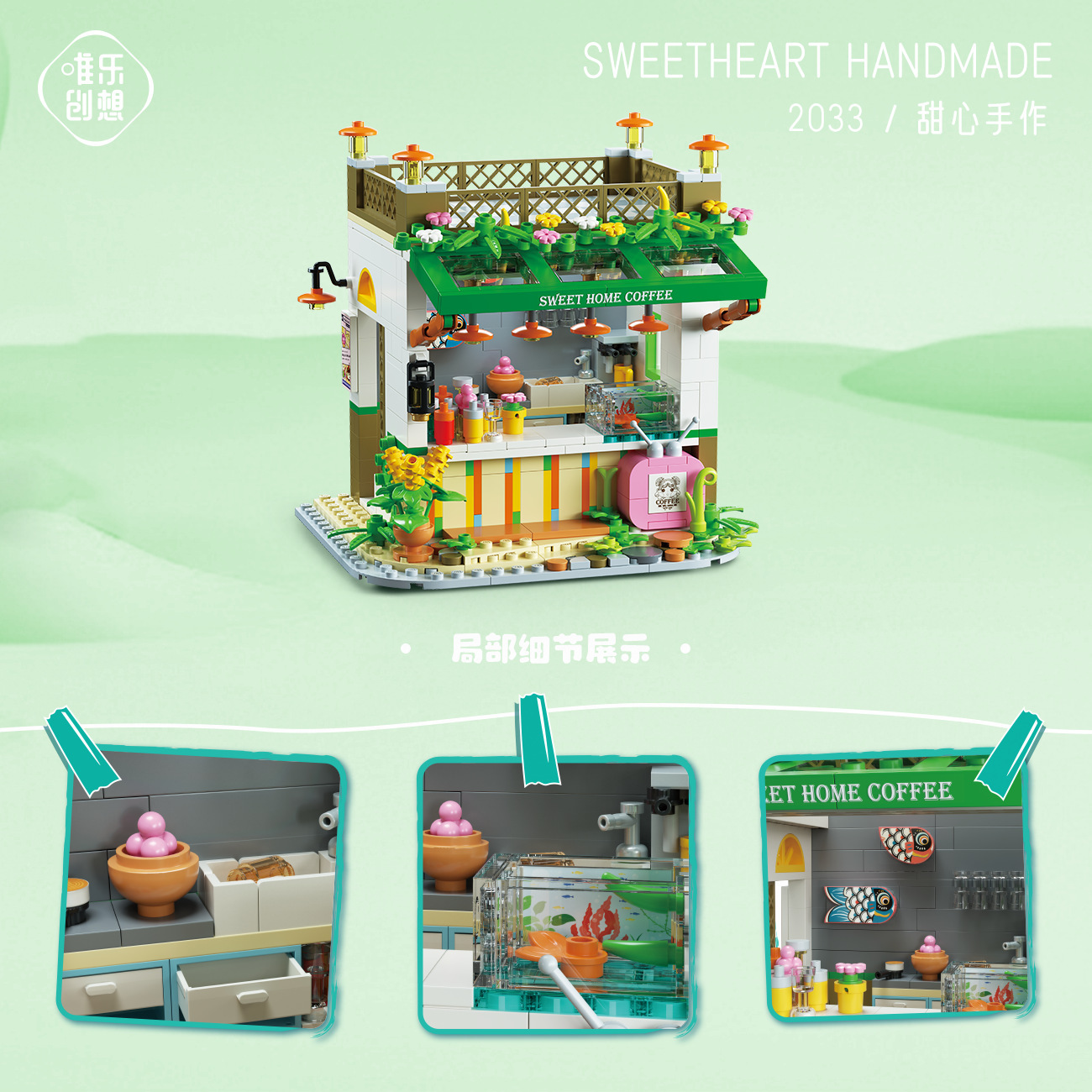 Weile Chuangxiang WL2033-6 동화 마을 카페 스튜디오 스트리트 뷰 빌딩 블록 조립 모형 장난감스토어 가기