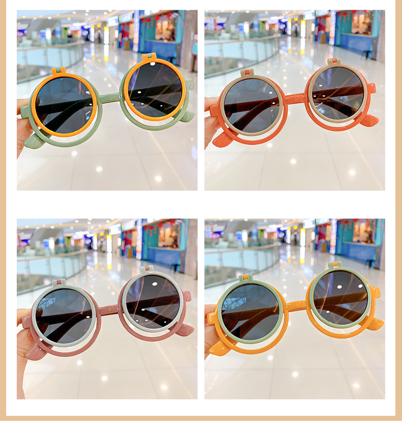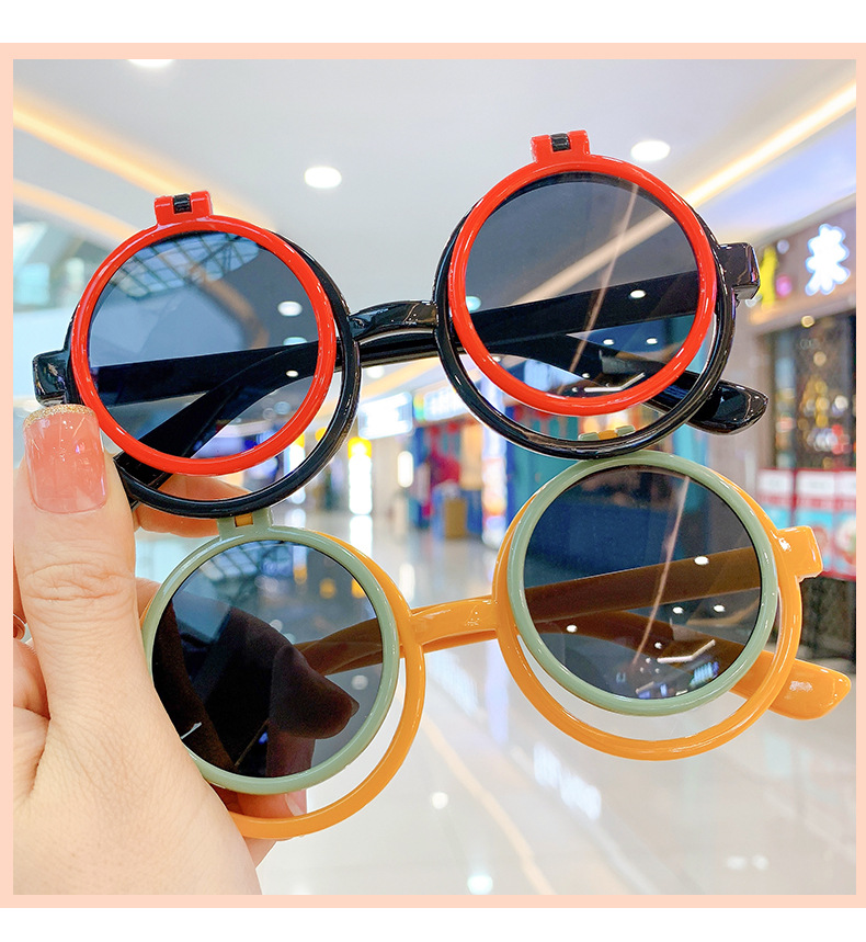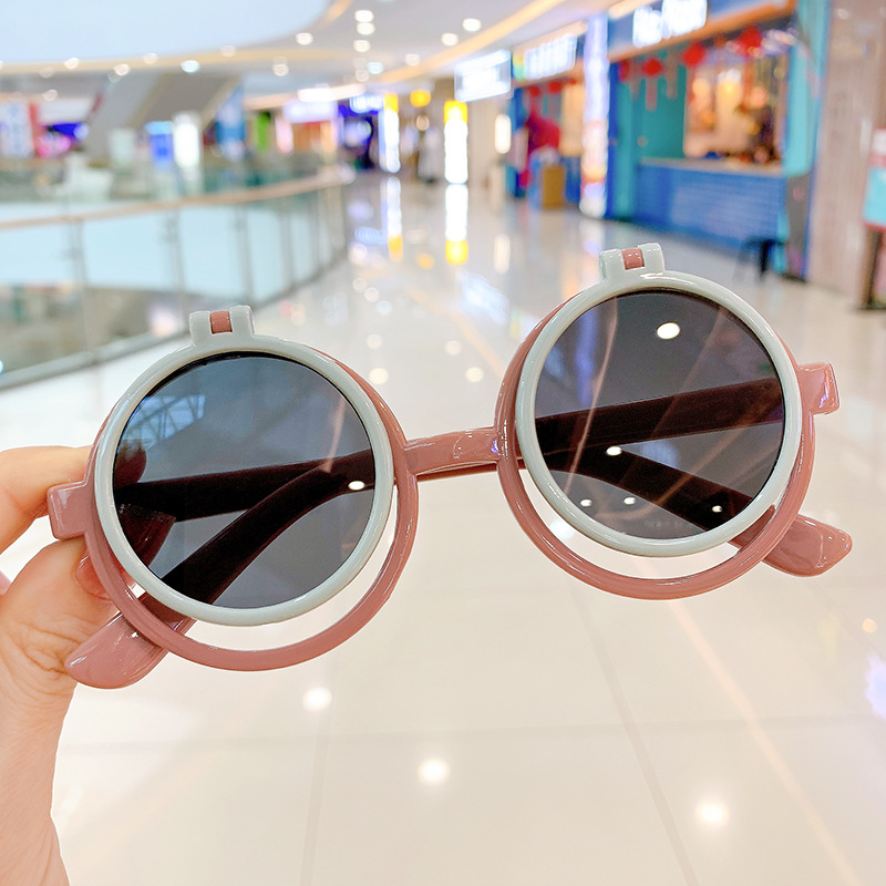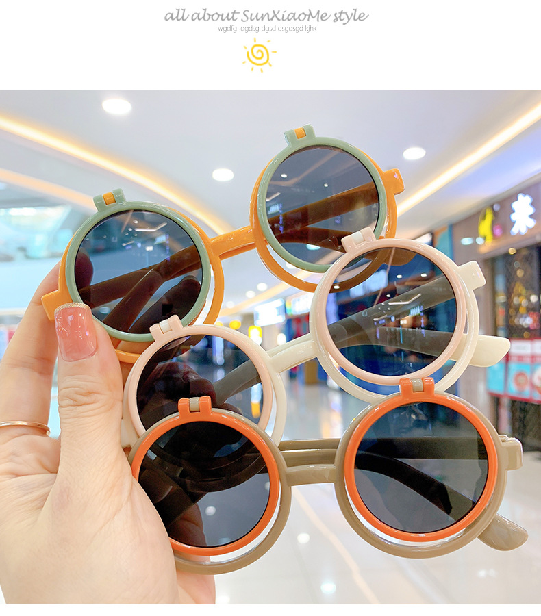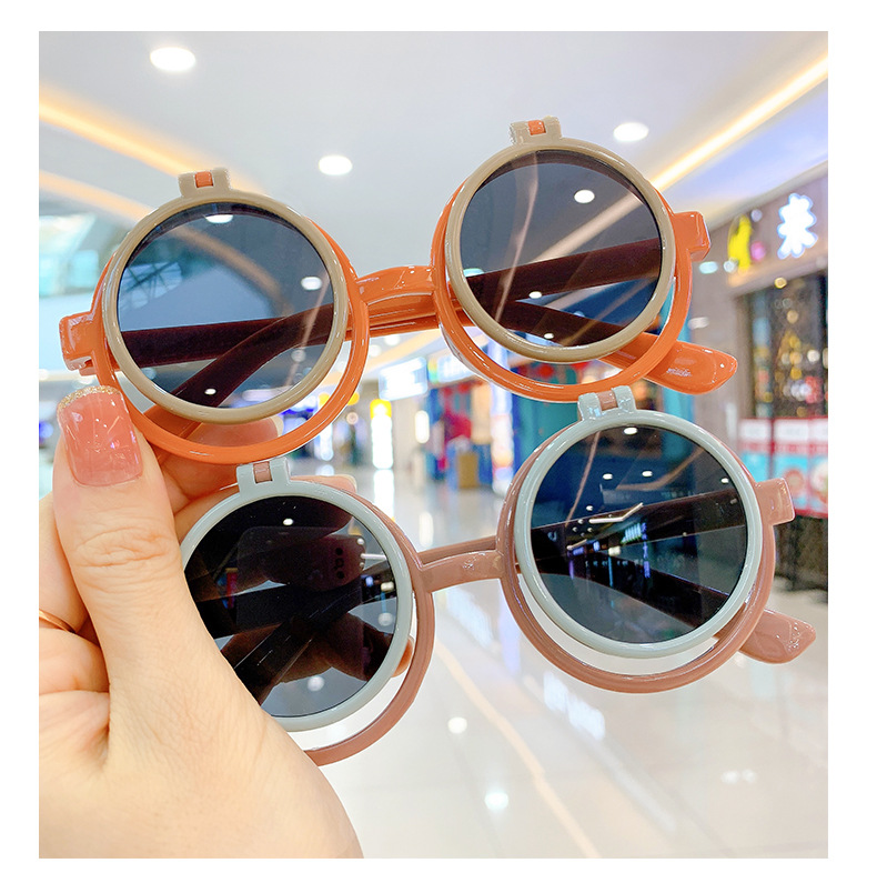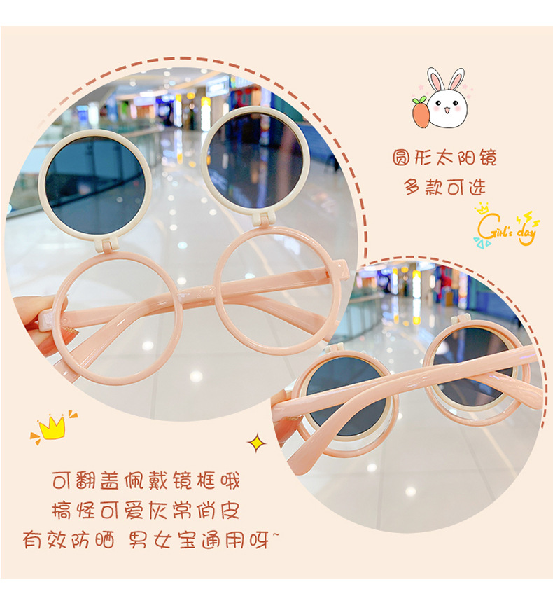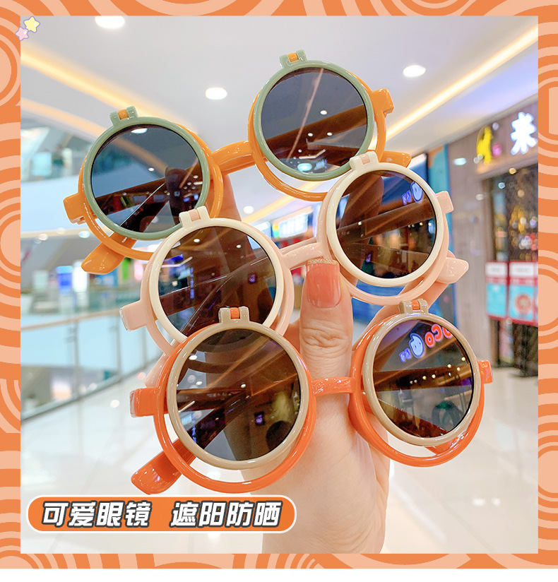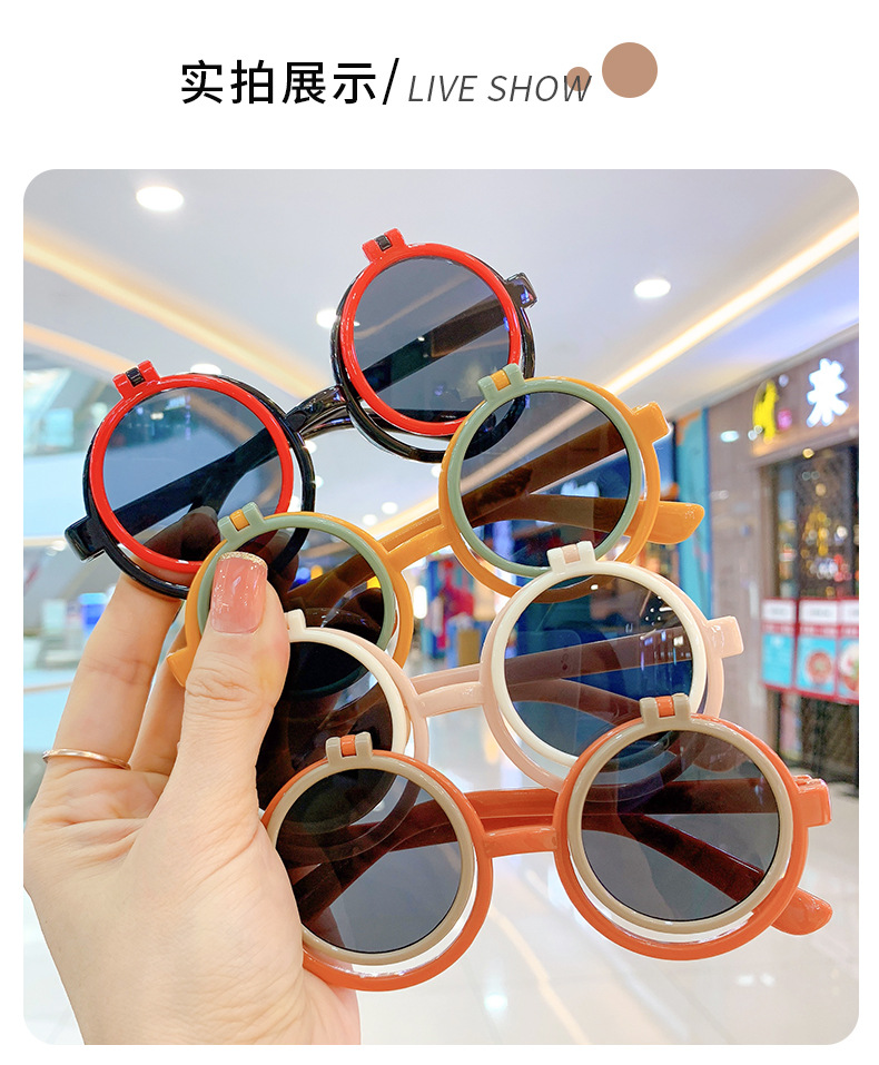 어린이 안경 작은 얼굴 귀여운 전체 프레임 어린이 플립 라운드 얼굴 야외 자외선 차단 개인화 된 선글라스 사진 패션스토어 가기