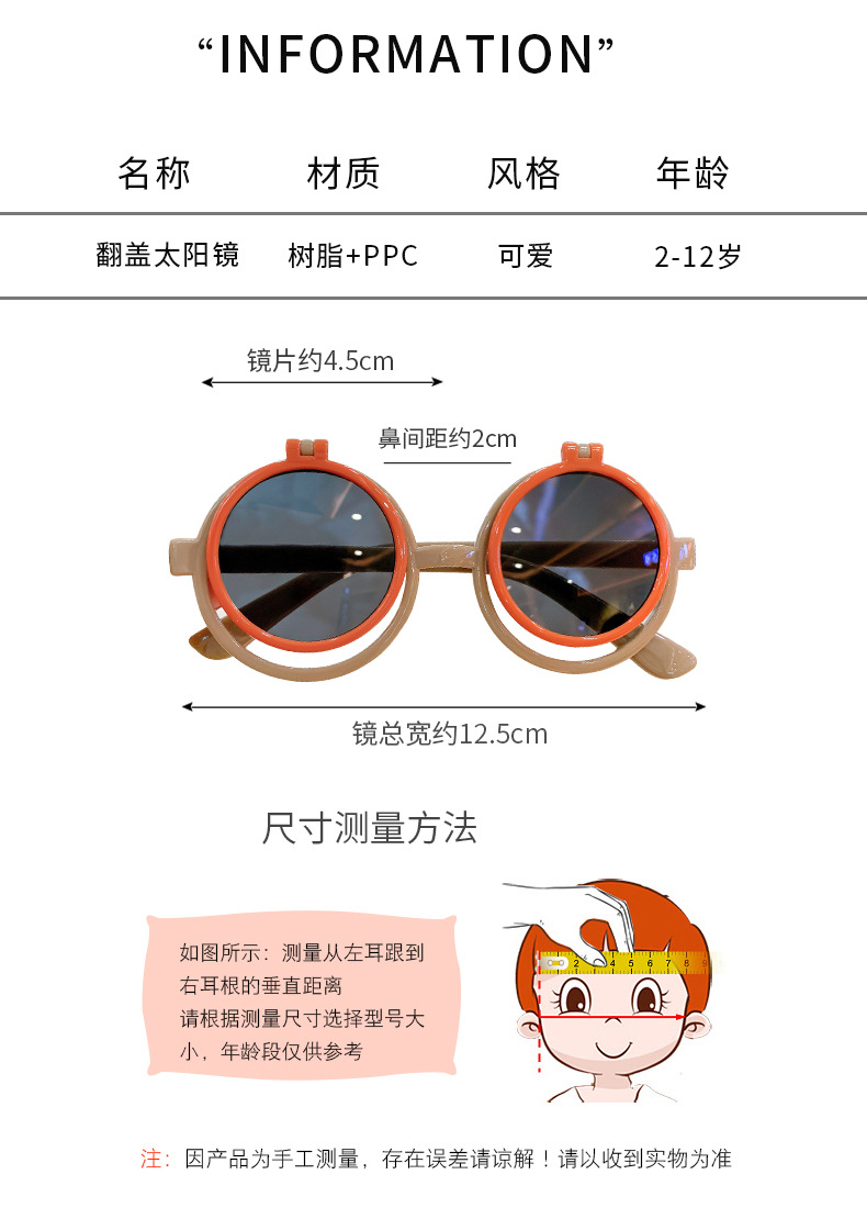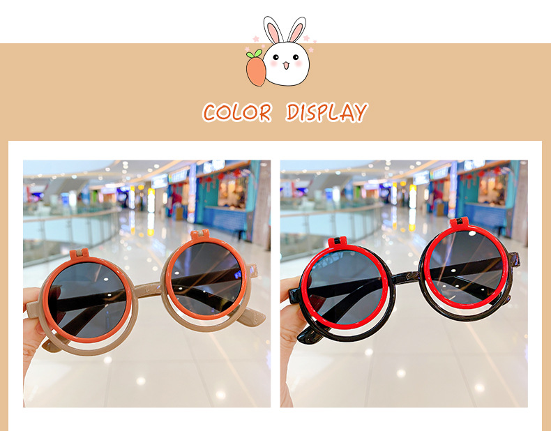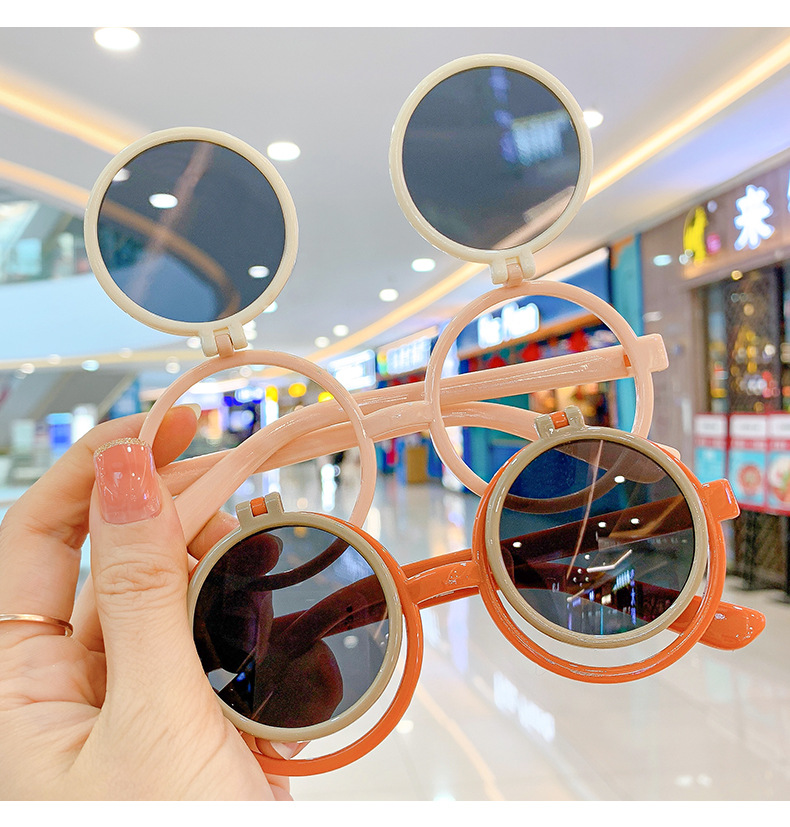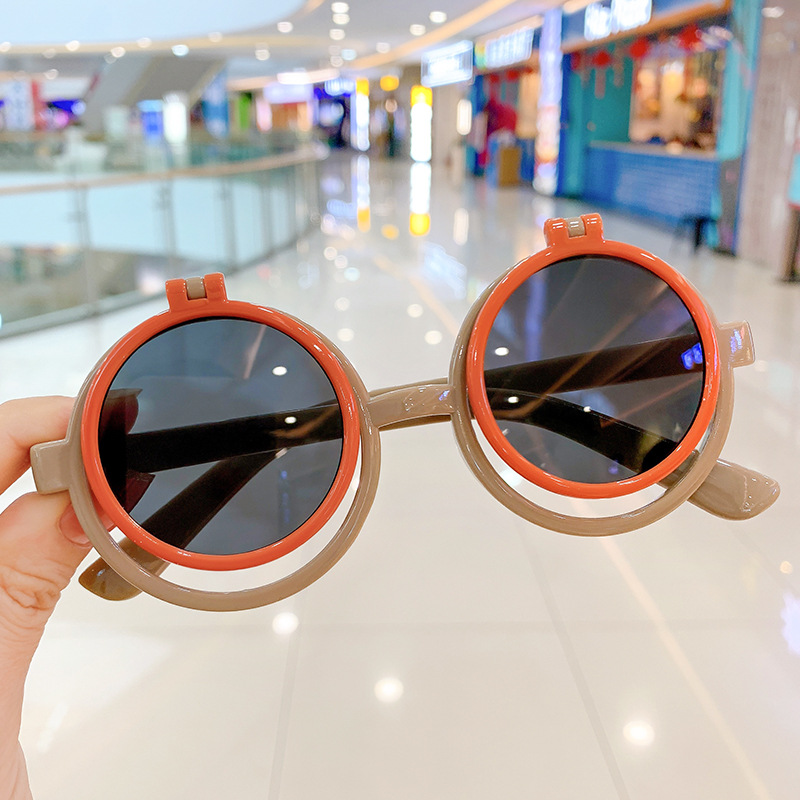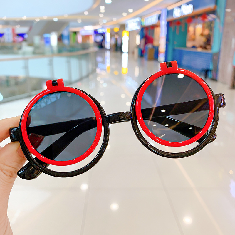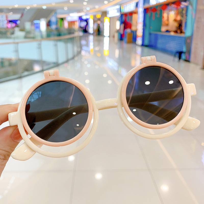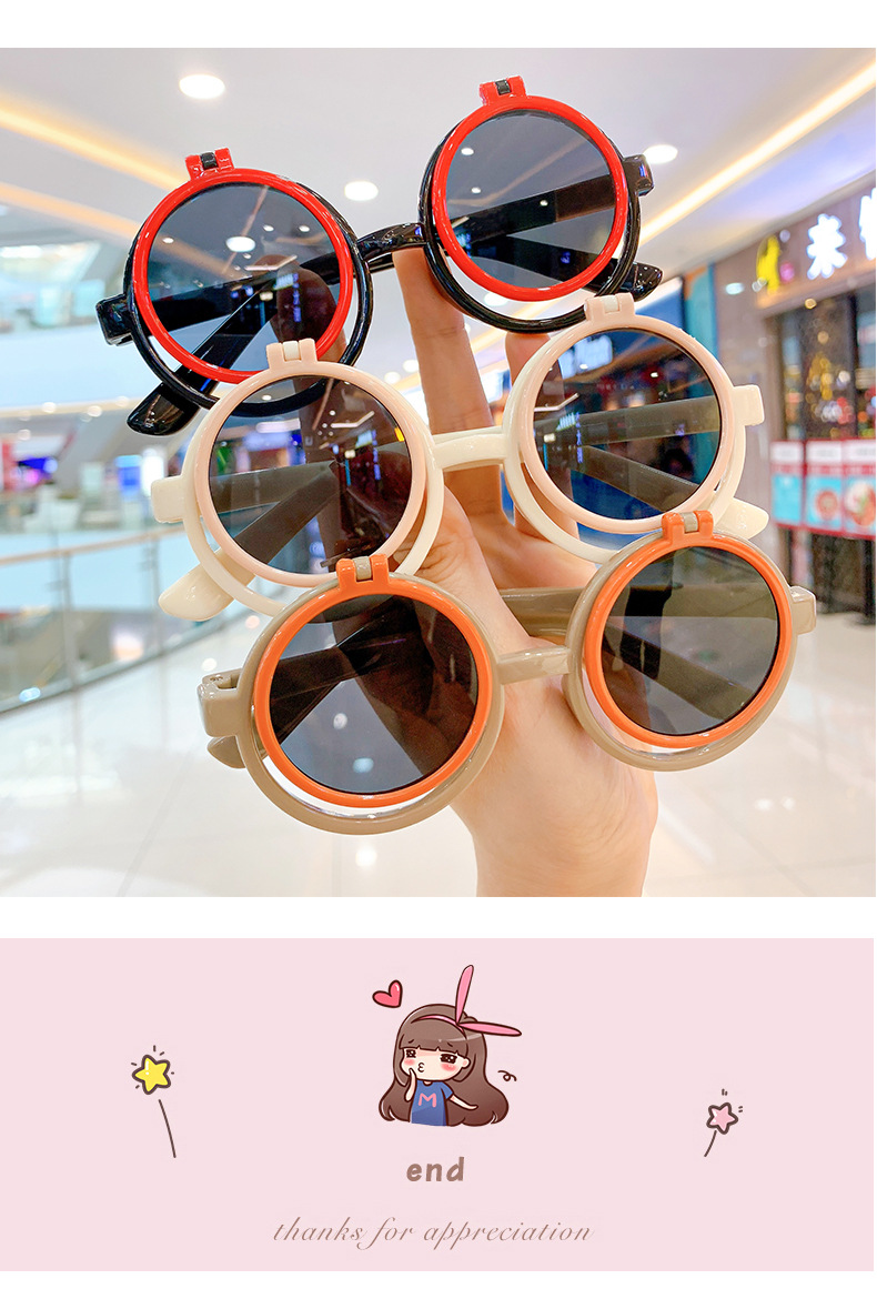 어린이 안경 작은 얼굴 귀여운 전체 프레임 어린이 플립 라운드 얼굴 야외 자외선 차단 개인화 된 선글라스 사진 패션스토어 가기