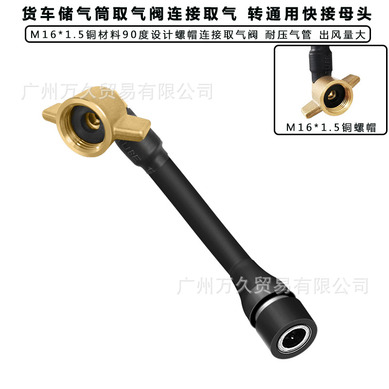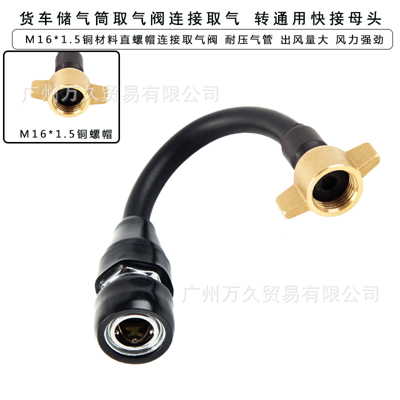 1.将M16*1.5铜螺帽直接连接货车储气筒或干燥机的取气阀即可