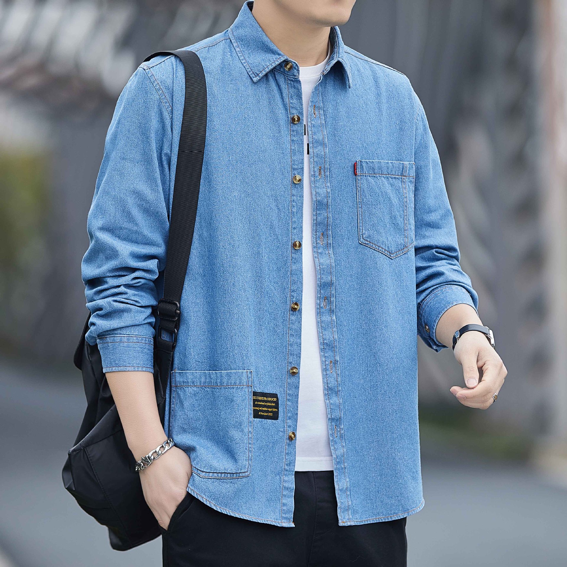 봄 가을 신상 순면 데님 긴팔 셔츠 남성용 홍콩 스타일 캐주얼 면 셔츠 재킷 루즈핏 남성복 트렌드스토어 가기