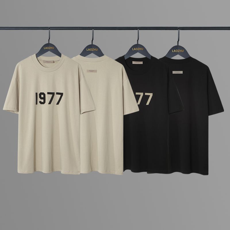 ESSENTIALS 1977년 여름 커플 반팔 남성 캐주얼 티셔츠 여성 플록 레터링 트렌디하고 다재다능한 아이템스토어 가기