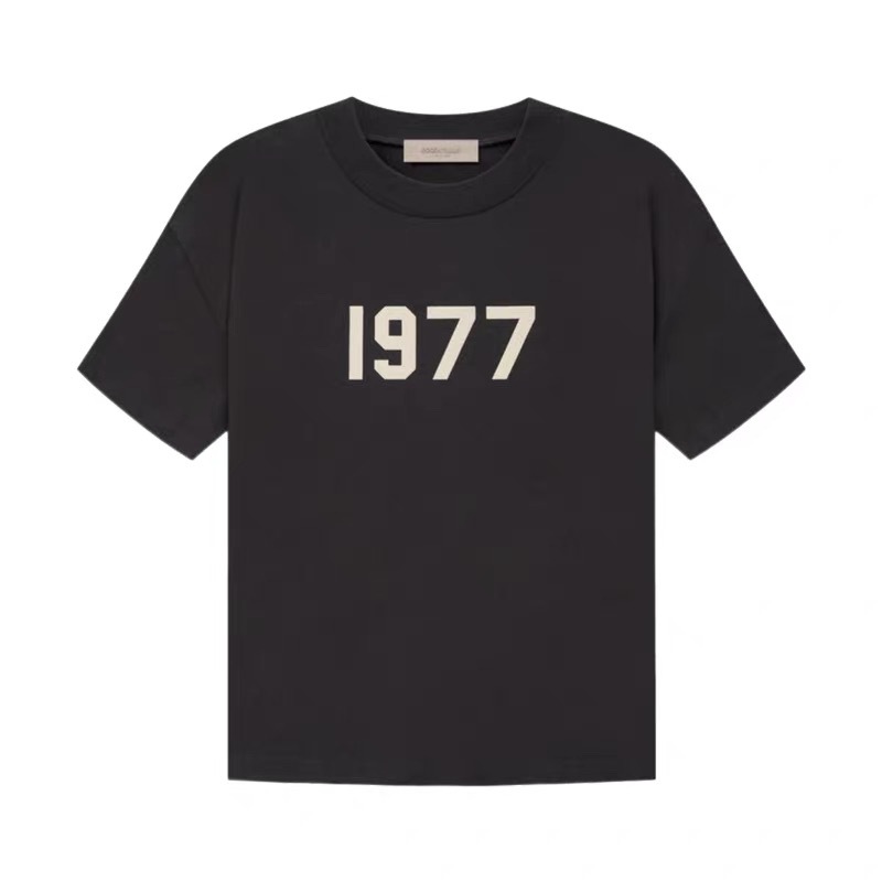 ESSENTIALS 1977년 여름 커플 반팔 남성 캐주얼 티셔츠 여성 플록 레터링 트렌디하고 다재다능한 아이템