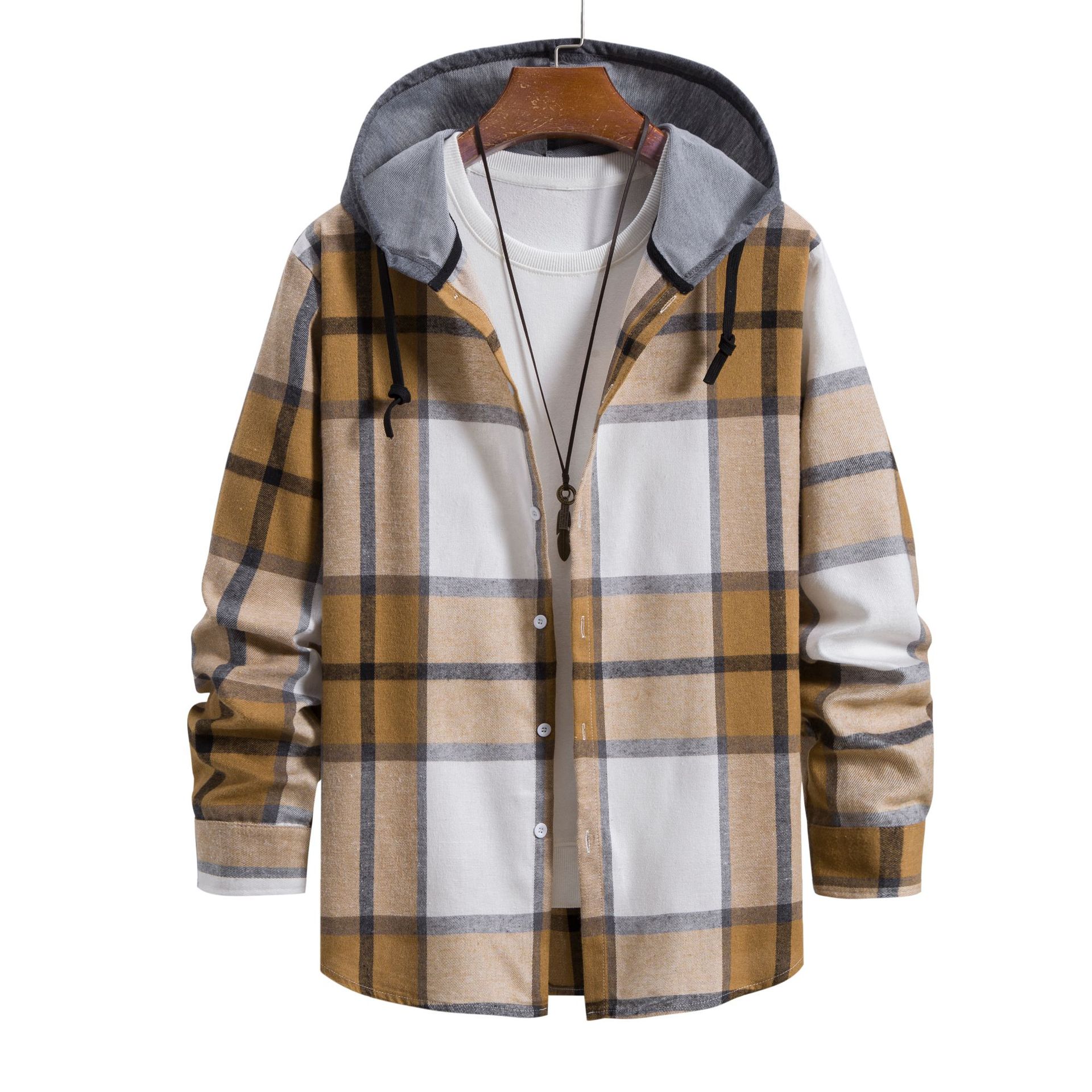 2024 봄과 가을 새로운 격자 무늬 긴팔 셔츠 남성 한국 스타일 유행 후드 셔츠 남성 캐주얼 남성 셔츠 도매스토어 가기