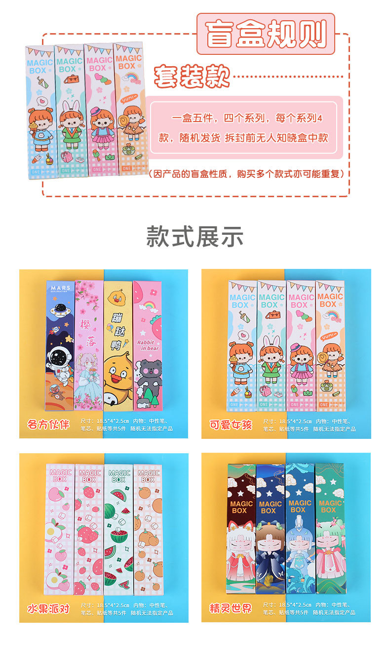 서프라이즈 박스 5 종 세트 블라인드 박스 젤 펜 학생 학습 용품 어린이 보상 선물 오피스 사인 펜