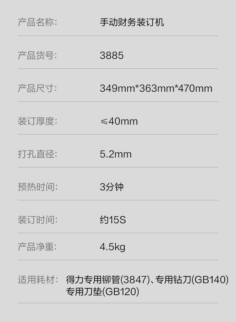 델리 3885 증서 제본기 소형 재무 회계 천공기 열융착 튜브 장부 사무용 입찰서 접착제 제본스토어 가기