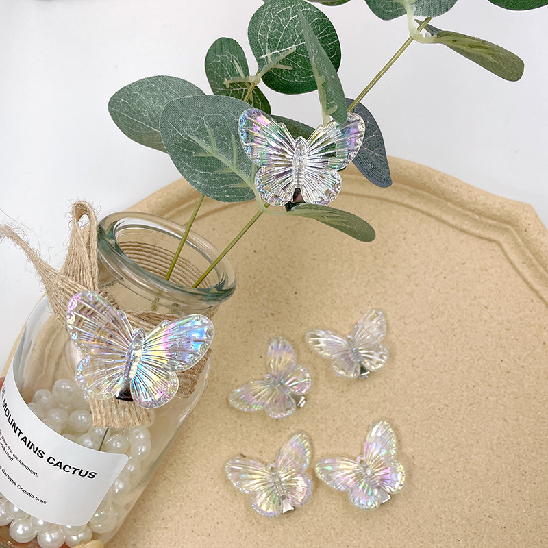 봄과 여름 요정 펄럭이는 인어 아지 나비 머리핀 AB 다채로운 투명 달콤한 소녀 하트 헤어 액세서리 사이드 클립 조수