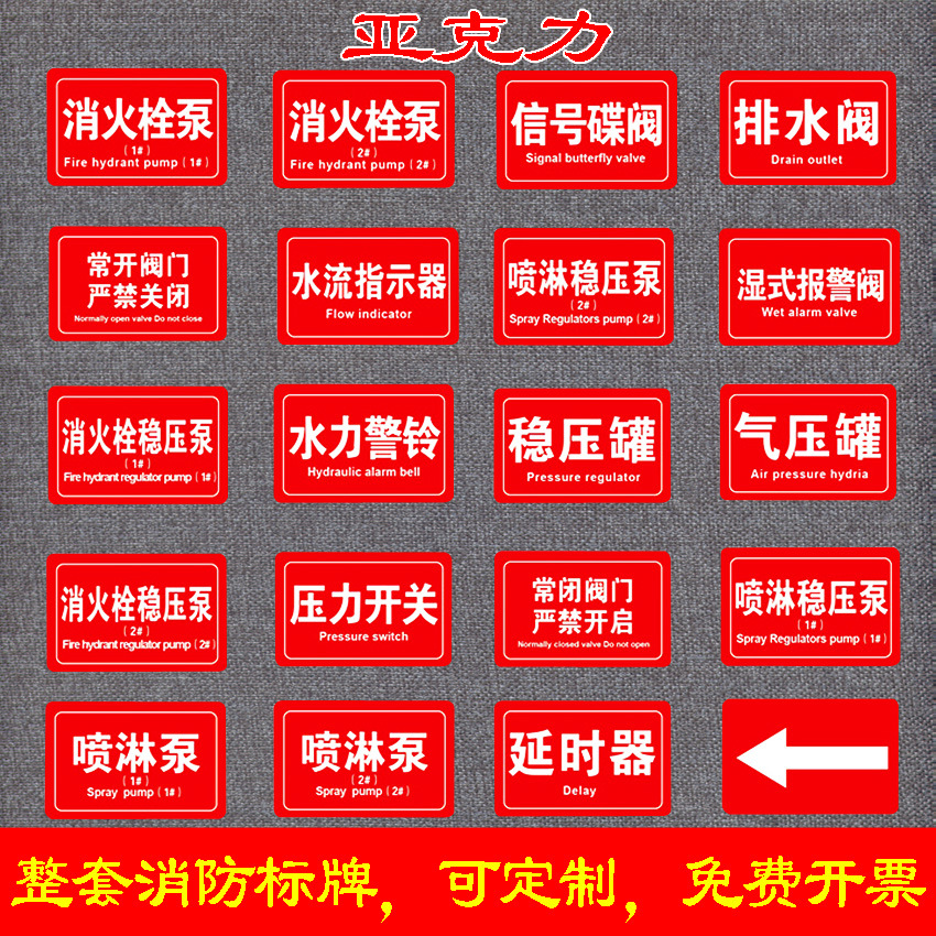 화재 예방 정상 개방 및 정상 폐쇄 표지판 판 스프레이 소화전 펌프 기계식 연기 배출 포트 물 펌프실 아크릴 밸브 표시