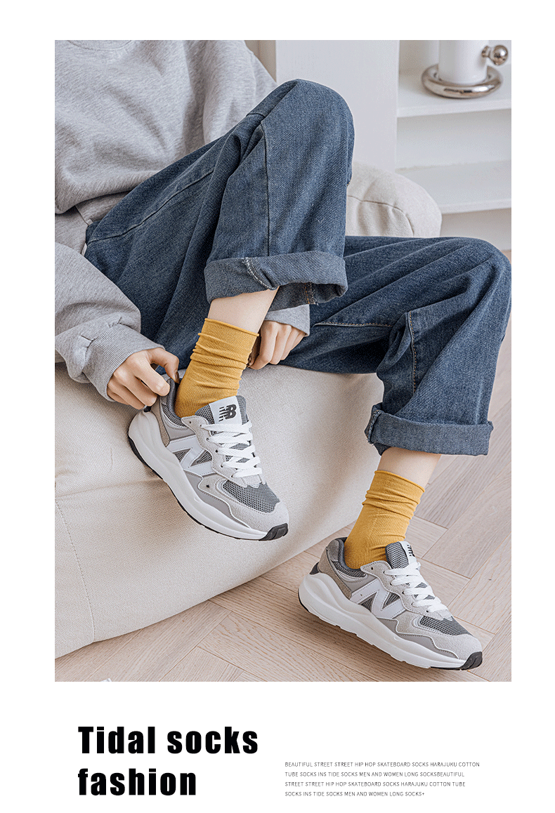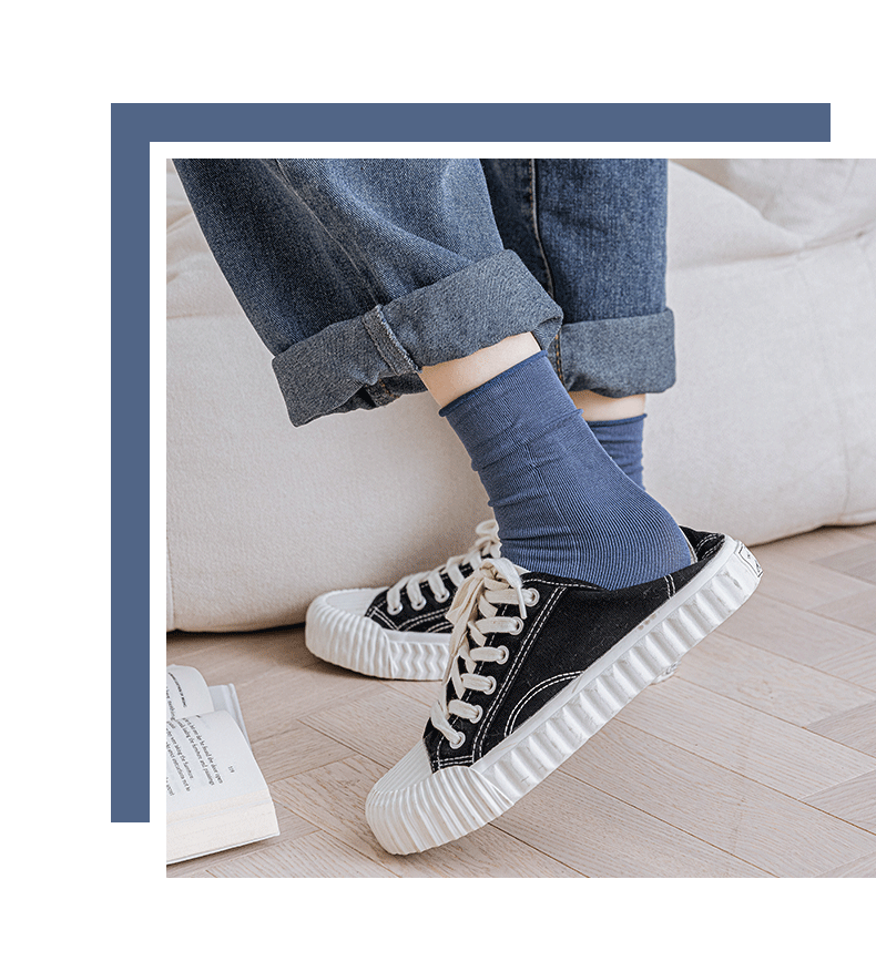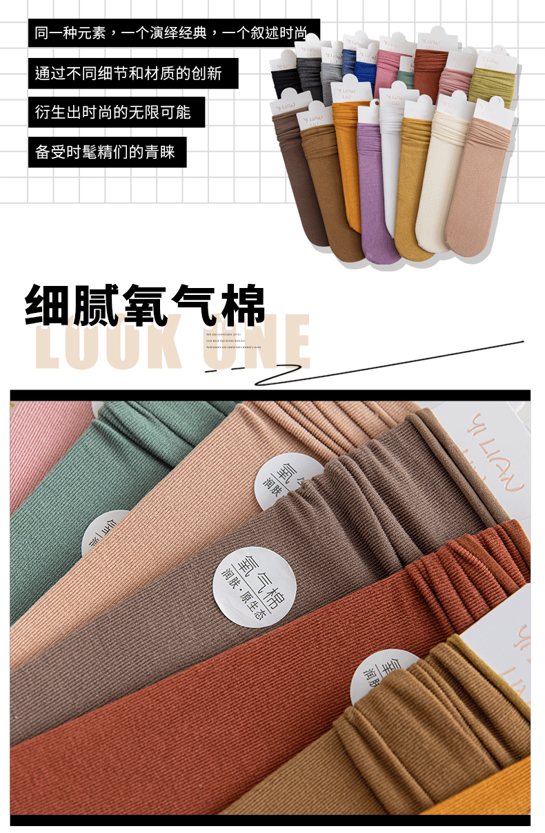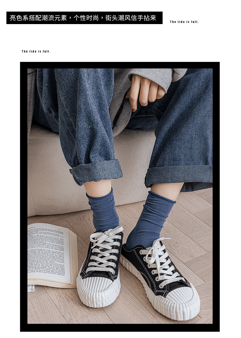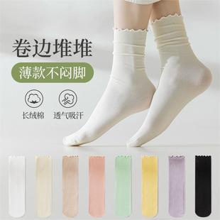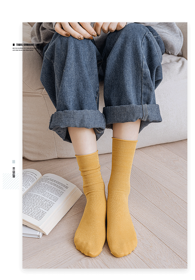 氧气棉堆堆袜 纯棉彩色透气卷边女袜韩版日系潮流中筒袜 诸暨袜子
