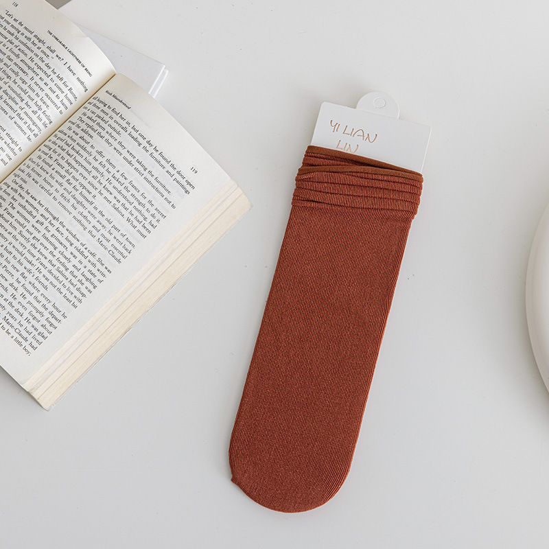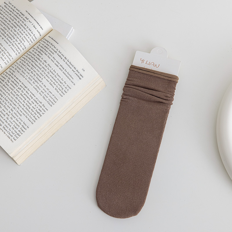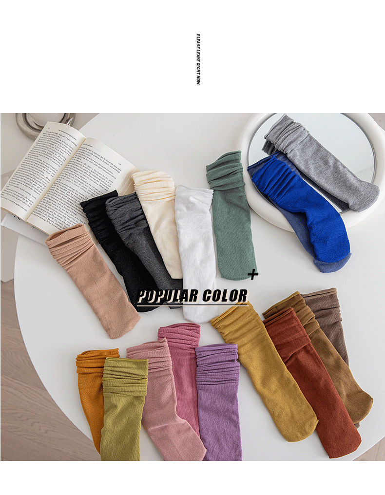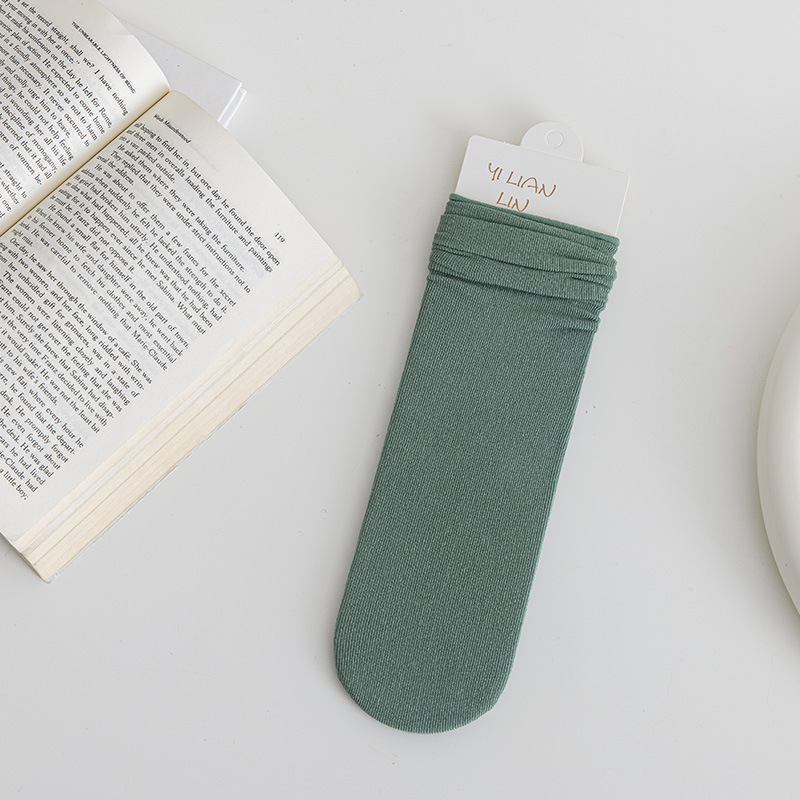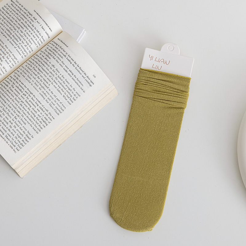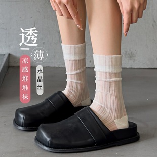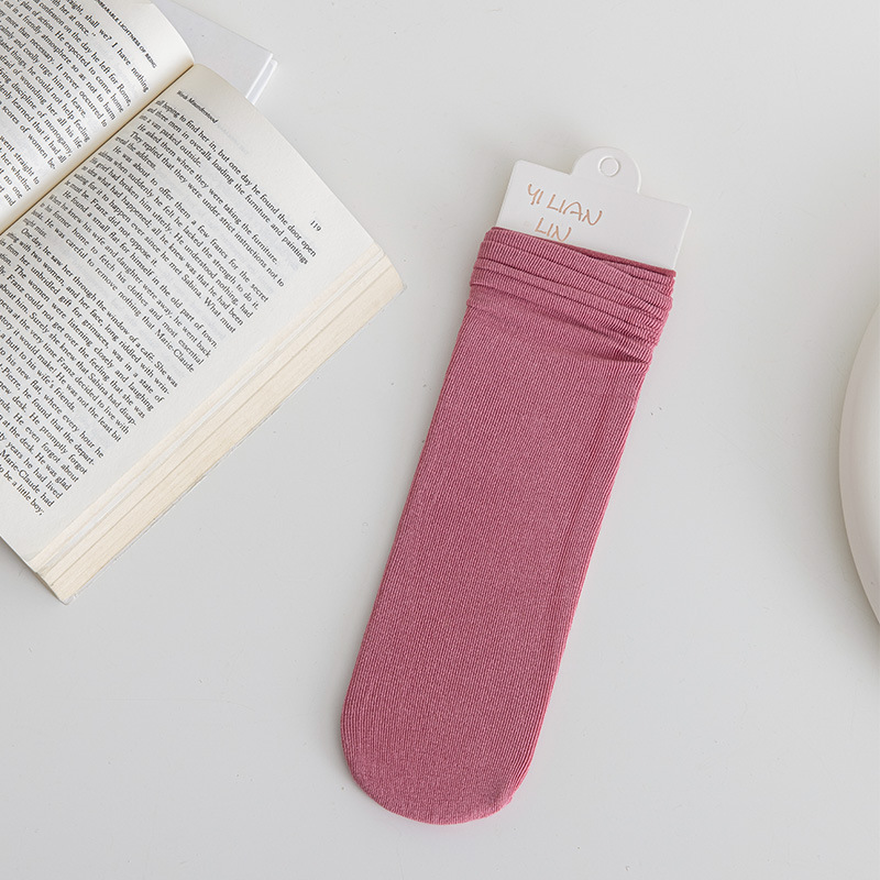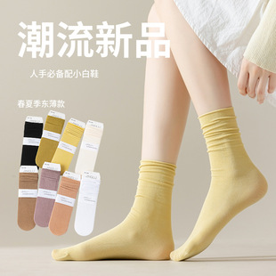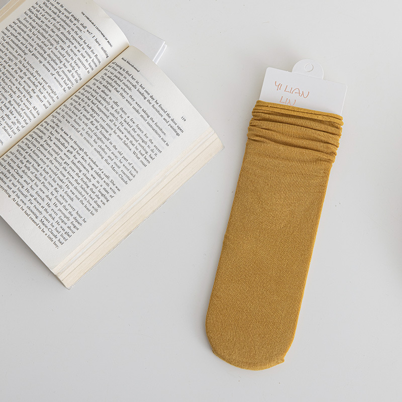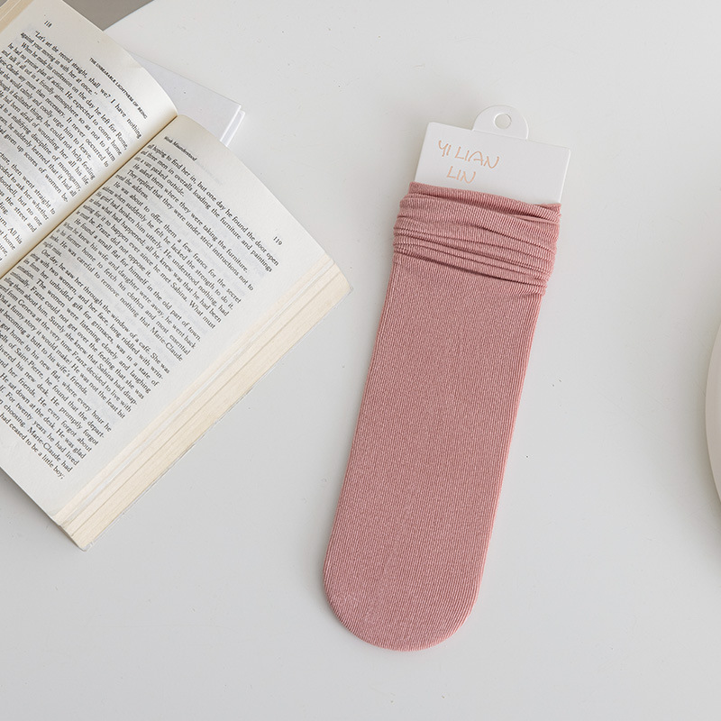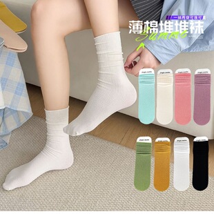 冰冰袜子 女中筒jk袜堆堆袜春夏季薄款天鹅绒纯色爆款冰丝袜 新品