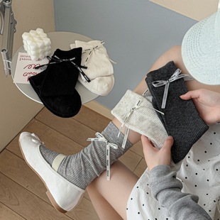 女童袜子春秋儿童洛丽塔花边公主袜韩版洋气蝴蝶结女孩宝宝小腿袜