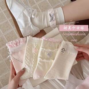 산소면 쌓인 양말 면 다채로운 통기성 컬 여성 양말 한국식 일본 유행 jk Zhuji 양말 미드 튜브 양말스토어 가기