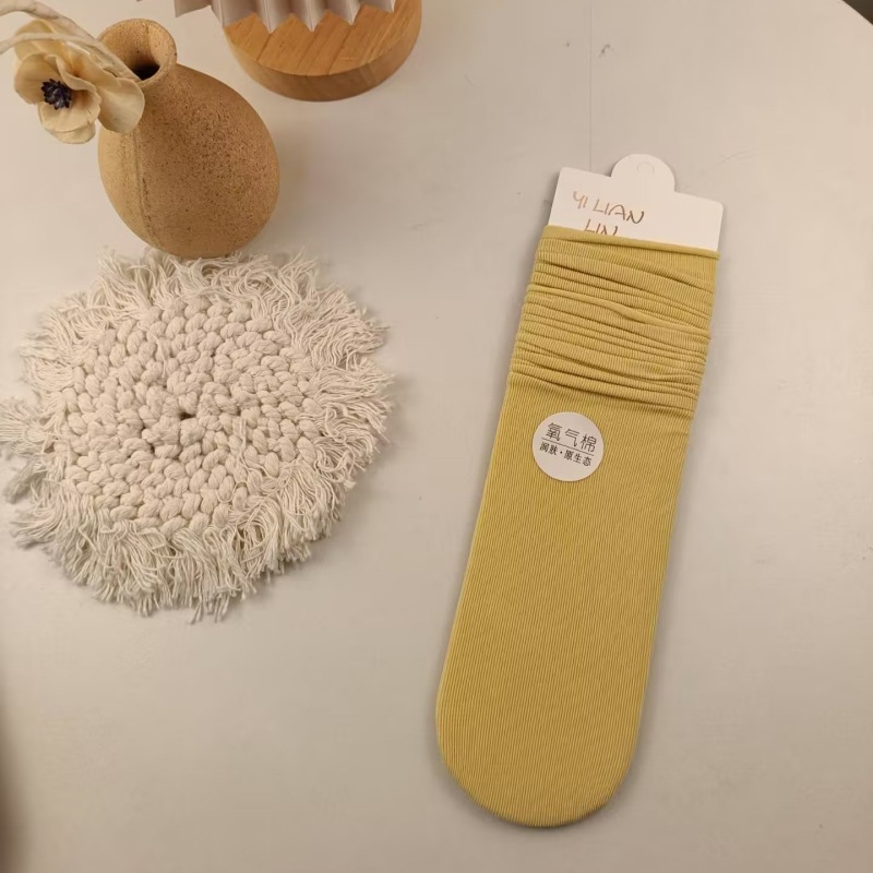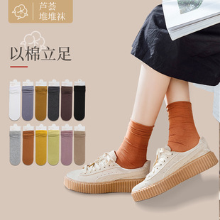 诸暨袜子女 春秋堆堆袜全棉中筒袜松口月子女袜纯色日系无骨长袜