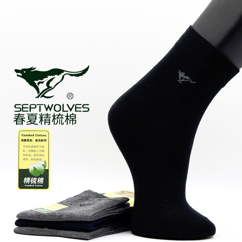 Septwolves 비즈니스 브랜드 남성 양말 봄과 여름 얇은 빗질 면 남성 양말 남성용 중간 튜브 땀 흡수 통기성 남성용 면 양말