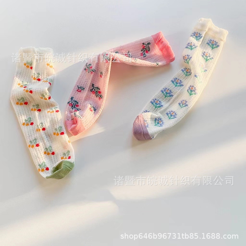 새 소녀 양말 여름 얇은 어린이 메쉬 중반 송아지 양말 한국 꽃 소녀 아기 긴 더미 양말스토어 가기