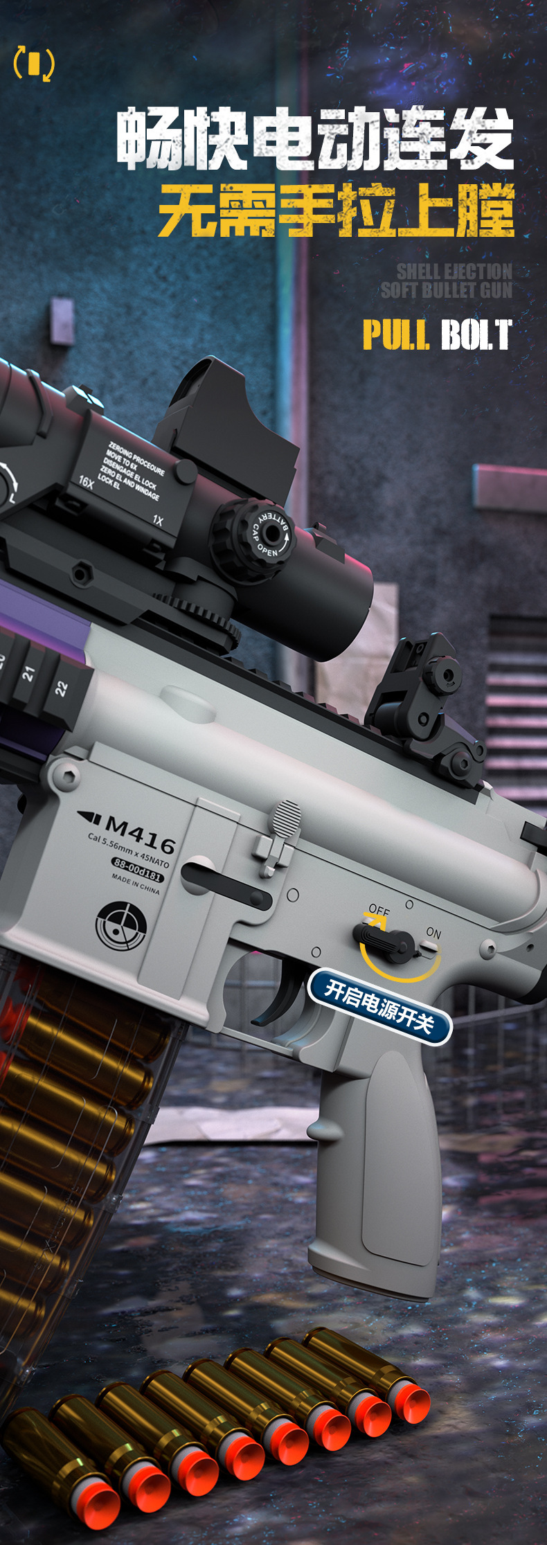 핸드-인-하나 M416 소프트 총알 총 포탄 던지기 가능 전기 파열 기관단총 소년 치킨 장난감 총 모델