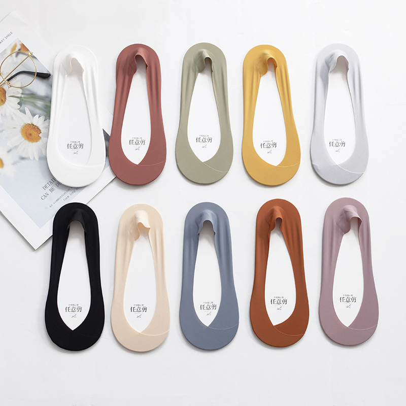 아이스 실크 보트 양말 여성용 여름 얇은 얕은 입 보이지 않는 양말 실리콘 미끄럼 방지 힐 유행 면 바닥 여성 양말