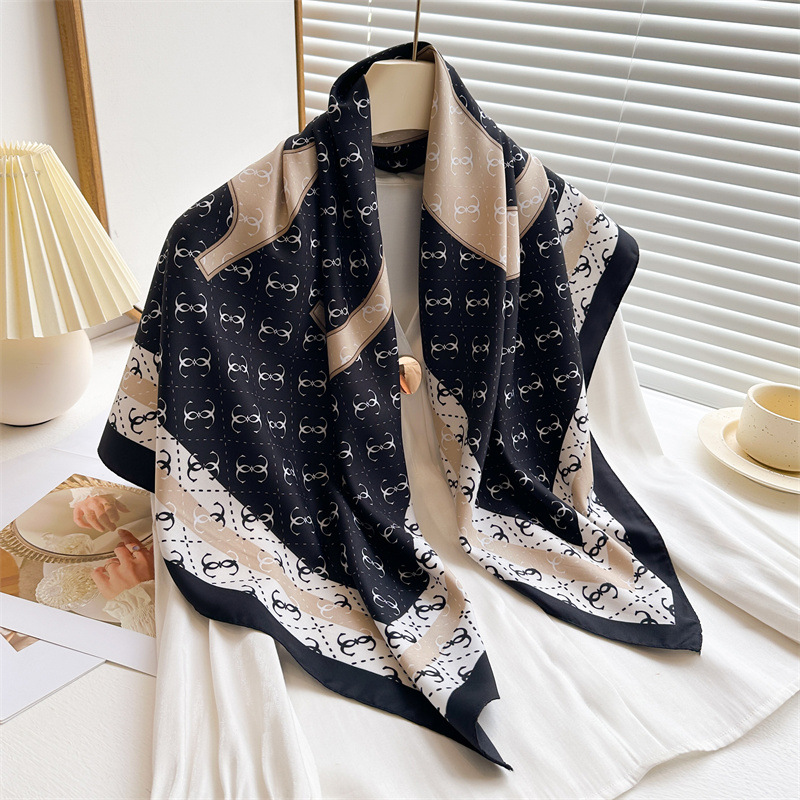 2024 새로운 실크 스카프 꽃 색상 매칭 스카프 능직 실크 스퀘어 스카프 90cm 여행 태양 보호 목도리 스카프 여성