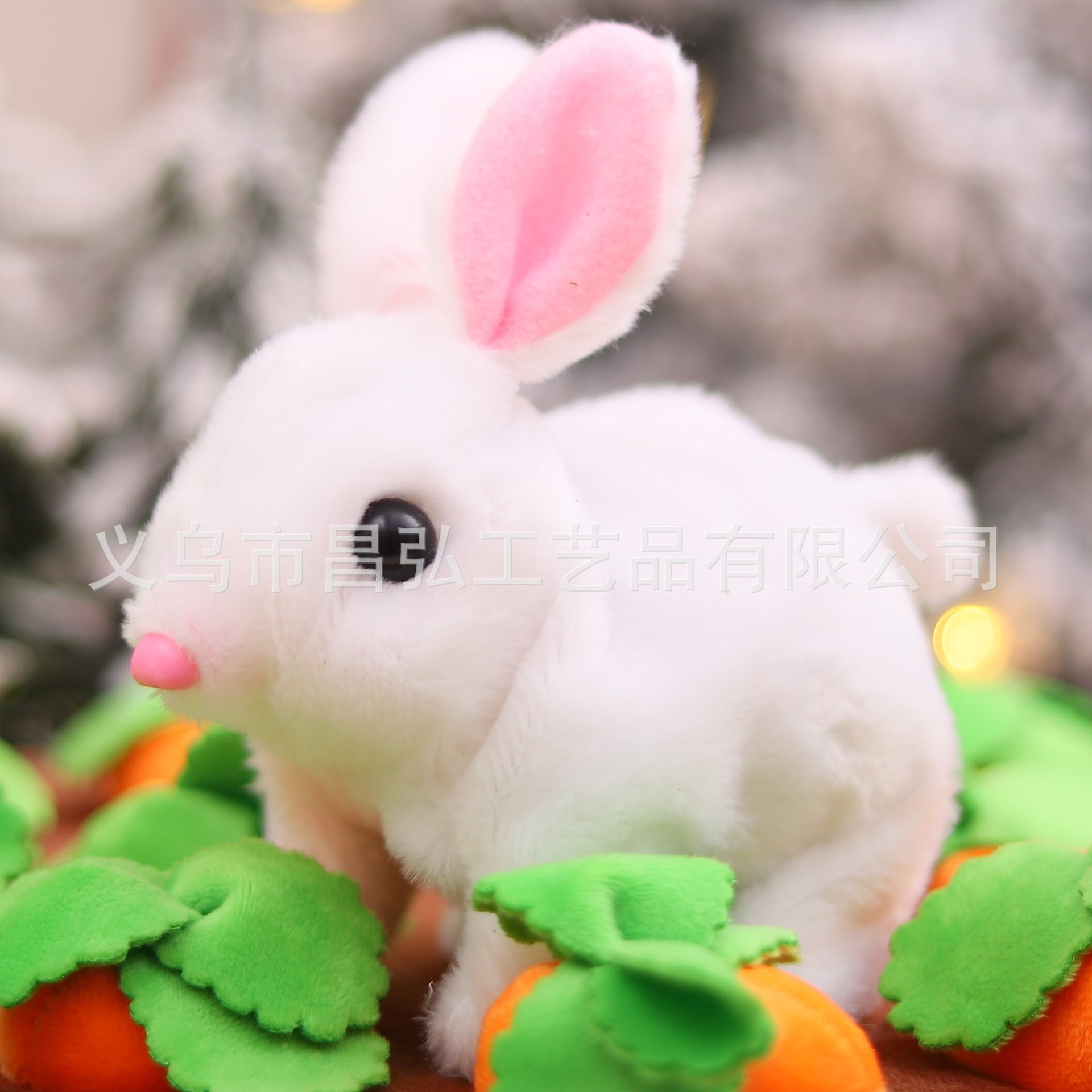전기 흰 토끼 시뮬레이션 플러시 장난감은 점프하고 걷고 입을 움직이고 귀를 흔들 수 있습니다. 어린이 놀이 집 애완 동물 토끼 장난감스토어 가기