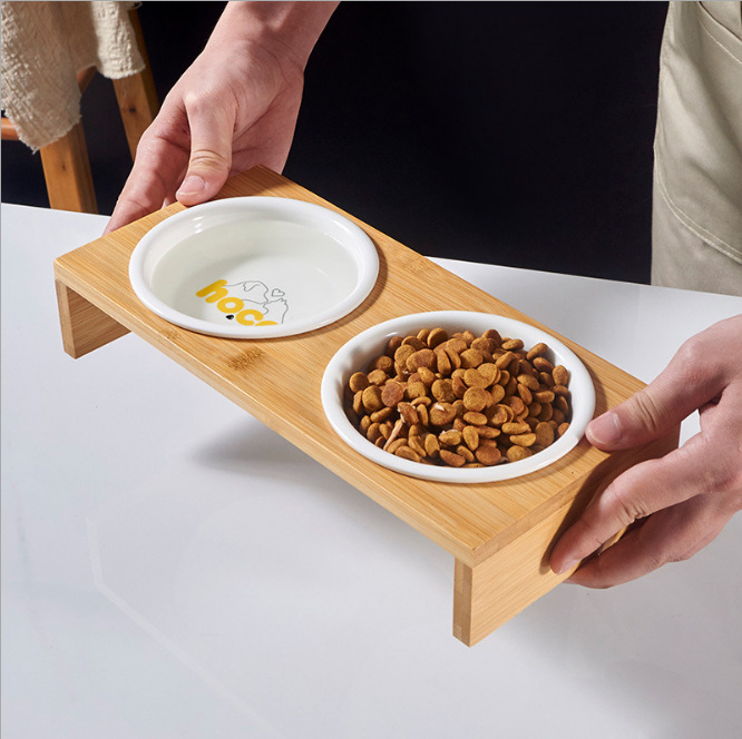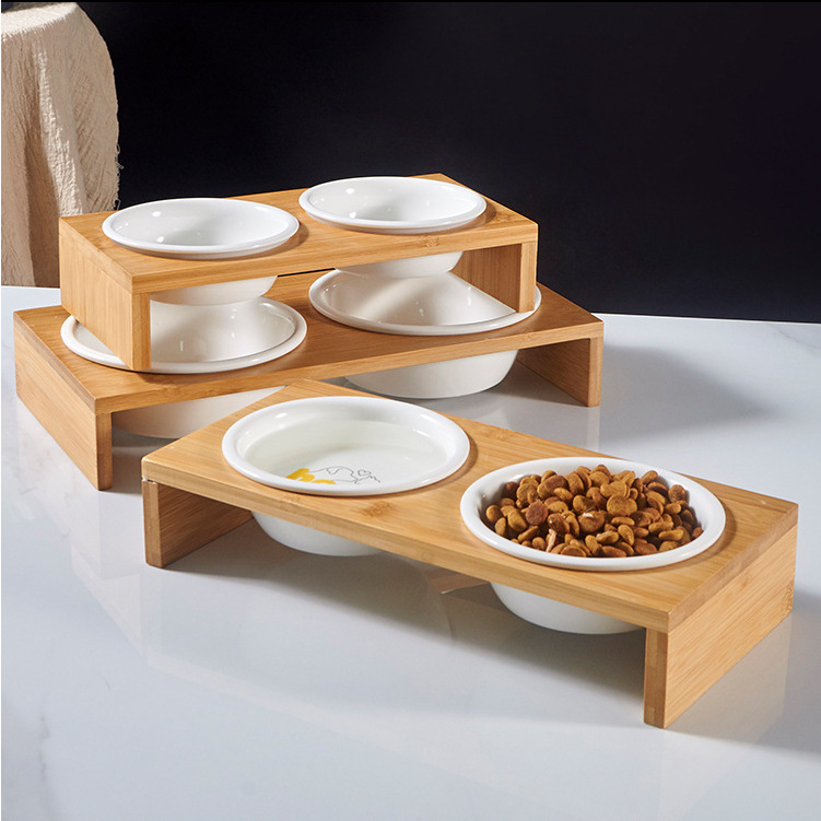 애완 동물 나무 식탁 고양이와 개 그릇 랙 고양이 더블 그릇 랙 고양이 밥 그릇 개 음식 그릇 개 물 그릇 밥 그릇 애완 동물 식기스토어 가기