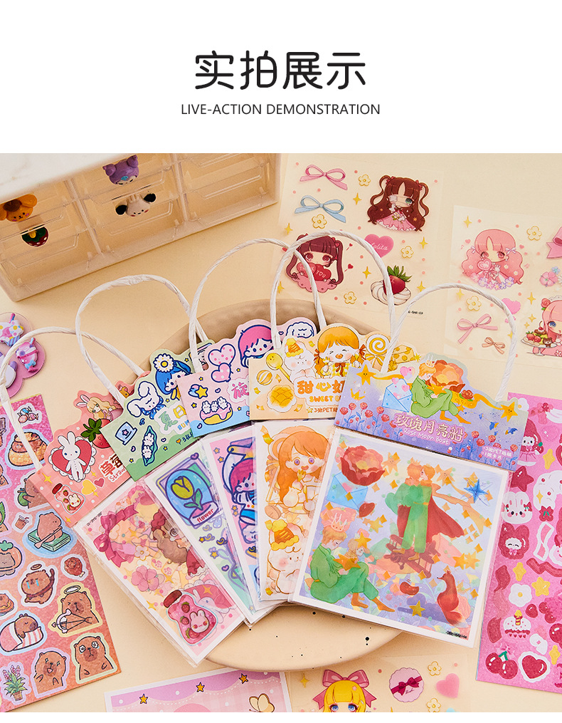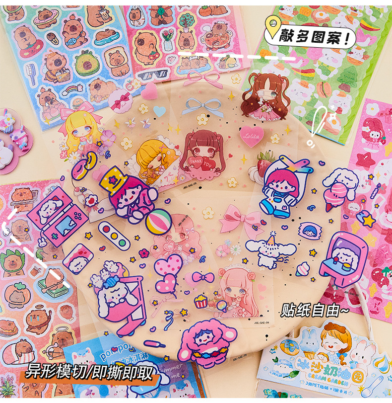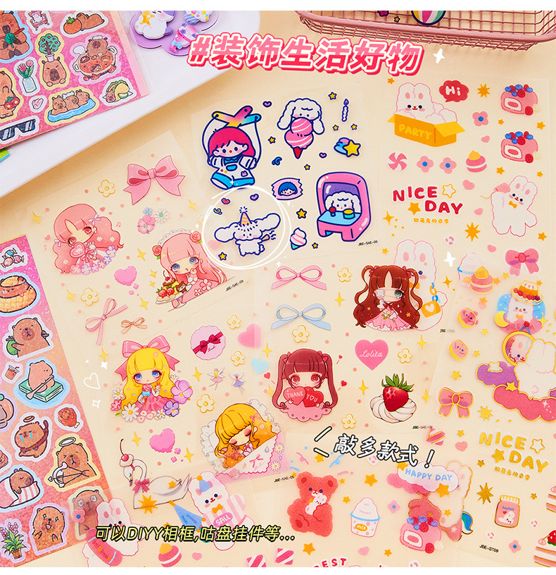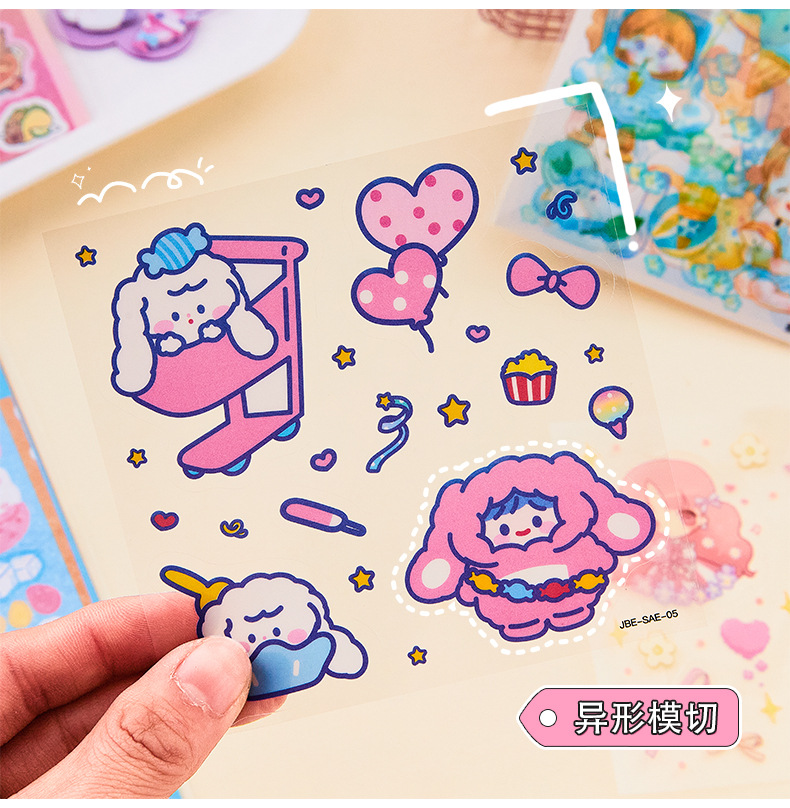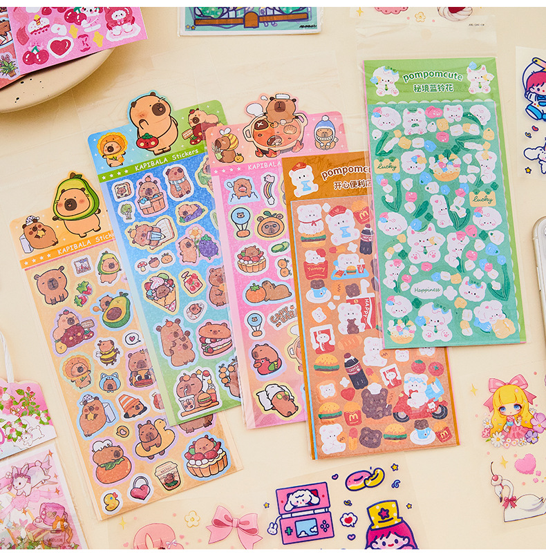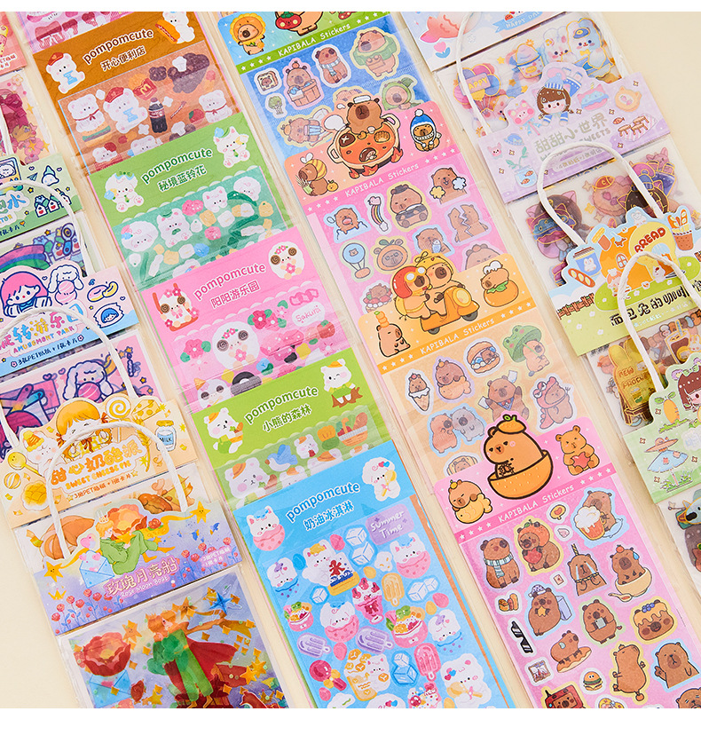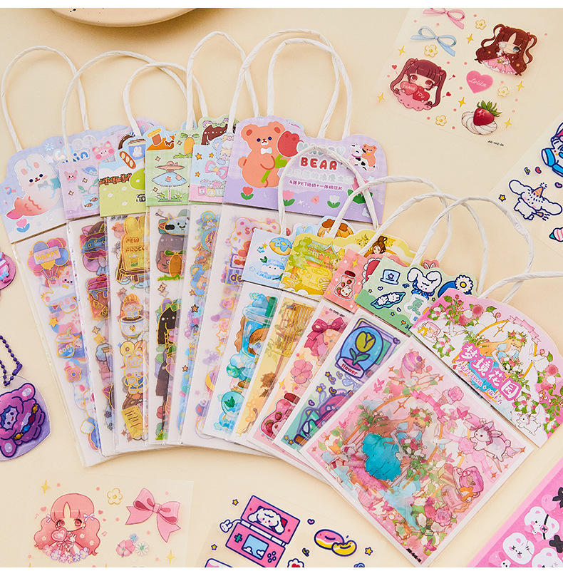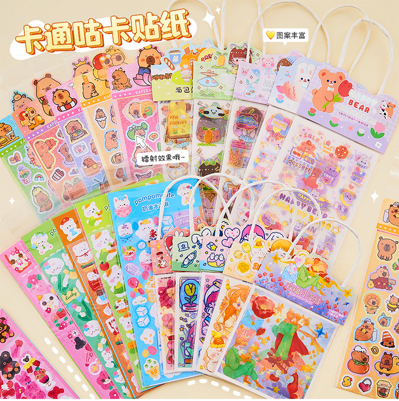 창조적 인 Ins 바람 손 계정 스티커 애완 동물 만화 반복 장식 스티커 귀여운 어린이 여성 선물 구오 카드 스티커 종이 가방