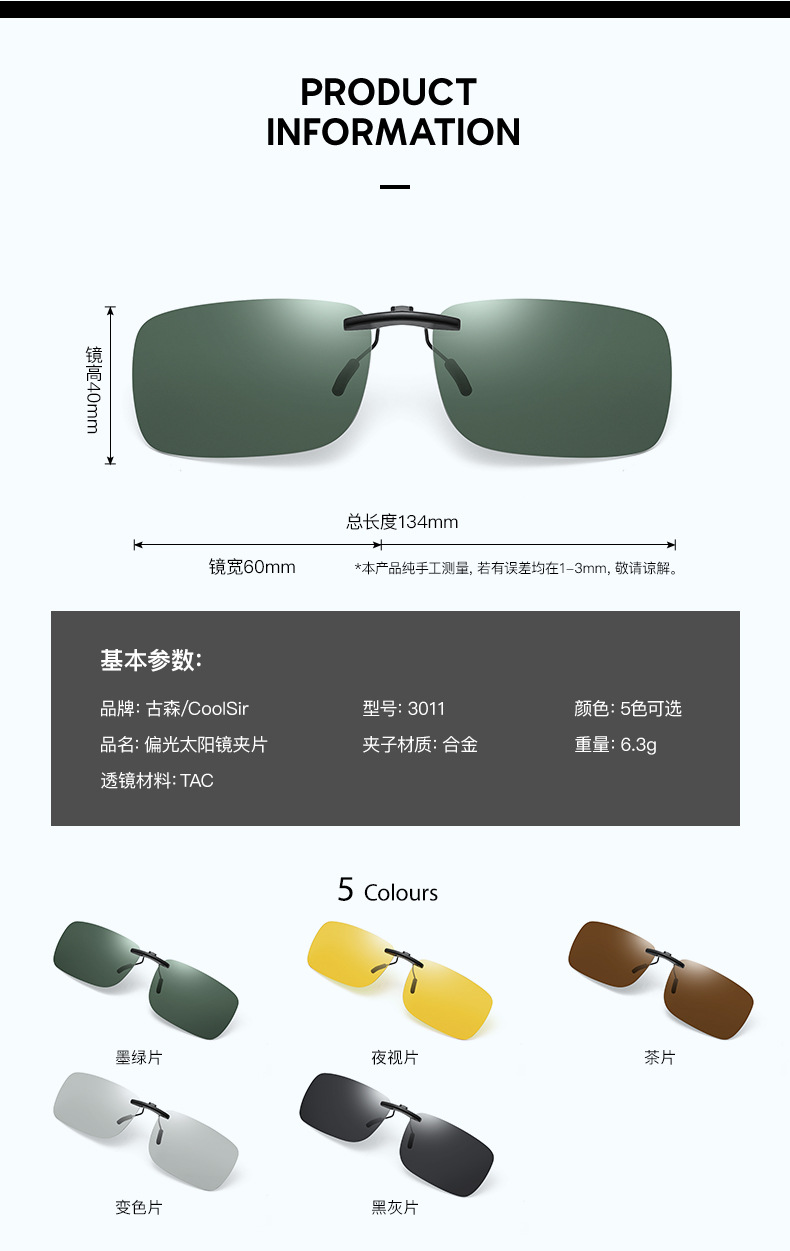 새로운 재고 근시 편광 선글라스 클립 3011 안경 클립 선글라스 클립을 운전하는 남녀 도매스토어 가기