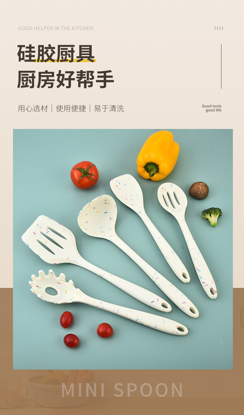 주방용품 세트 실리콘 주걱 창의적인 주방용품 가정용 실리콘 숟가락 주방 요리용 주걱 음식 집게 주방용품 세트