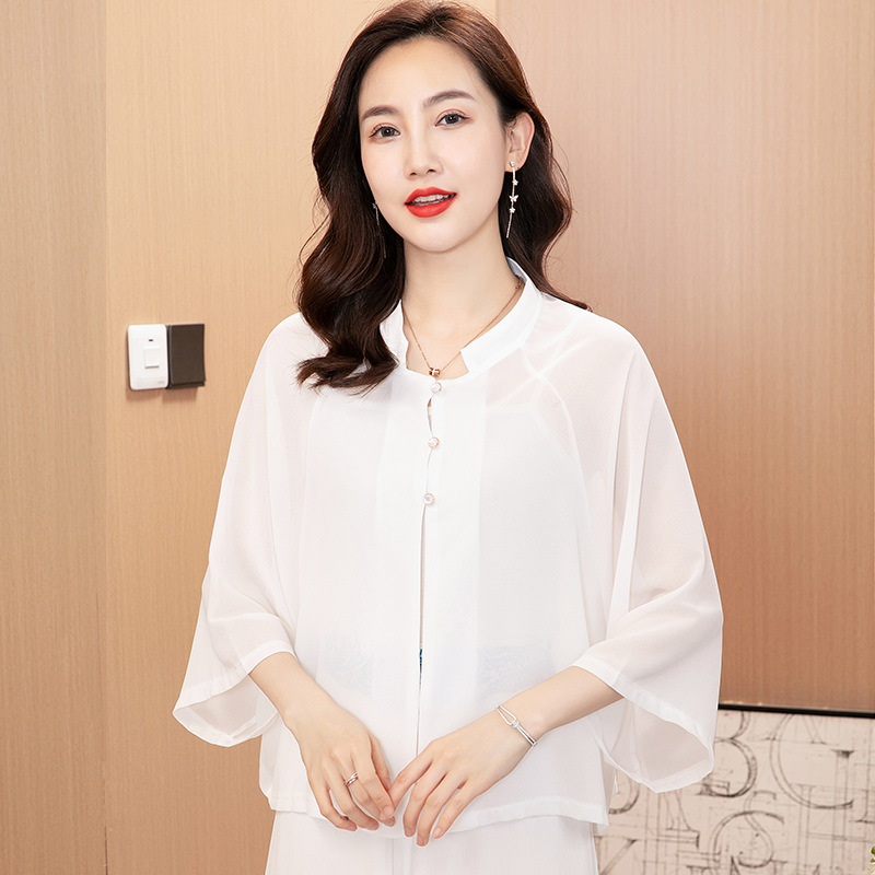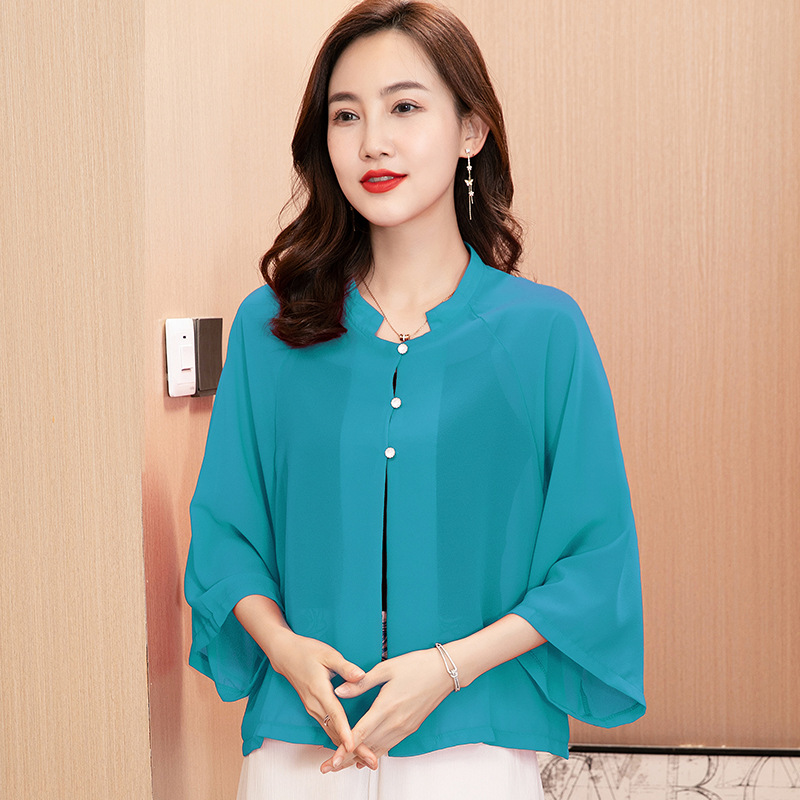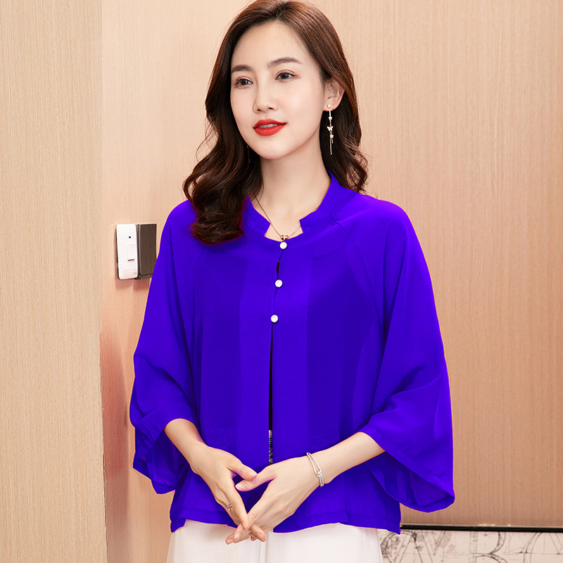 푸 다이 20027 버튼 쉬폰 셔츠 재킷
